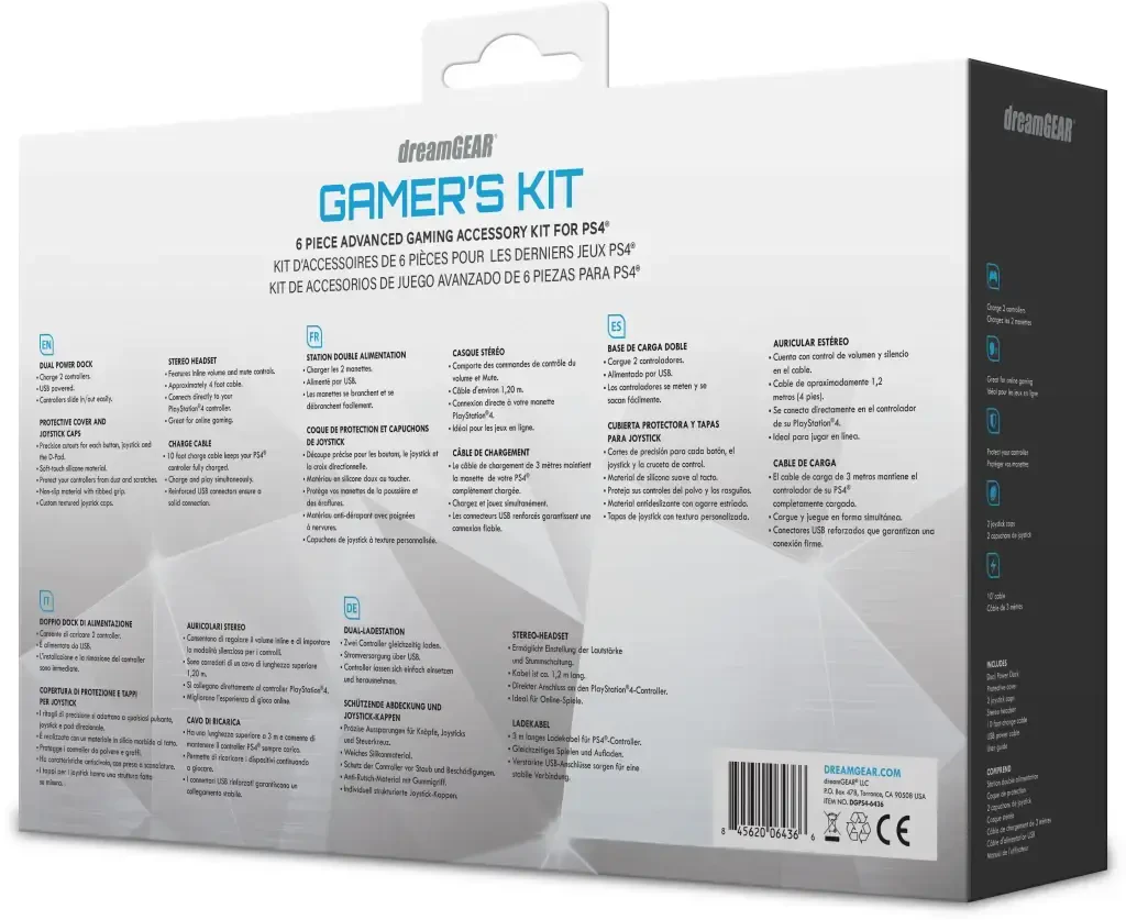 **dreamGEAR PlayStation 4 Продвинутый стартовый комплект для геймера**PS4™ учун мукаммал қўшимча. PS4 ўйинчисининг комплектига иккита контроллерни бир вақтда зарядлаш учун зарядлаш док-станцияси, 3 метрлик зарядлаш ва синхронизация кабел, рангори чиқадиган штангаси борли кристаллдек тоза микрофонли гарнитура ва текстурали жипстик қопқоқлари борли премиум силикон контроллер ғилофи киради. PlayStation 4 контроллери тўпламга кирмайди.**Хусусиятлари:*** Иккита зарядлаш док-станцияси: бир вақтда иккита PS4 контроллерини зарядлайди* 10 футлик зарядлаш ва синхронизация кабел: ўйин ўйнаётганда ҳам контроллерларингизни зарядлаб туради* Рангори чиқадиган штангаси борли кристаллдек тоза микрофонли гарнитура: онлайн ўйинларда рангори аниқ алоқа қилади* Текстурали жипстик қопқоқлари: яхшироқ ушлаш ва ҳассаслик учун* Премиум силикон контроллер ғилофи: контроллерингизни чизиқлардан ва уришлардан ҳимоя қилади* Бу комплект ўйин тажрибангизни яхшилаш ва ўйинлардан энг яхши натижага эришиш учун сизга керак бўлган барча асосий хусусиятларга эга. dreamGEAR PlayStation 4 Advanced Gamer's Starter Kit билан ўйинларингизни навбатдаги даражага кўтаринг ва ўйин дунёсида алоҳида туринг.