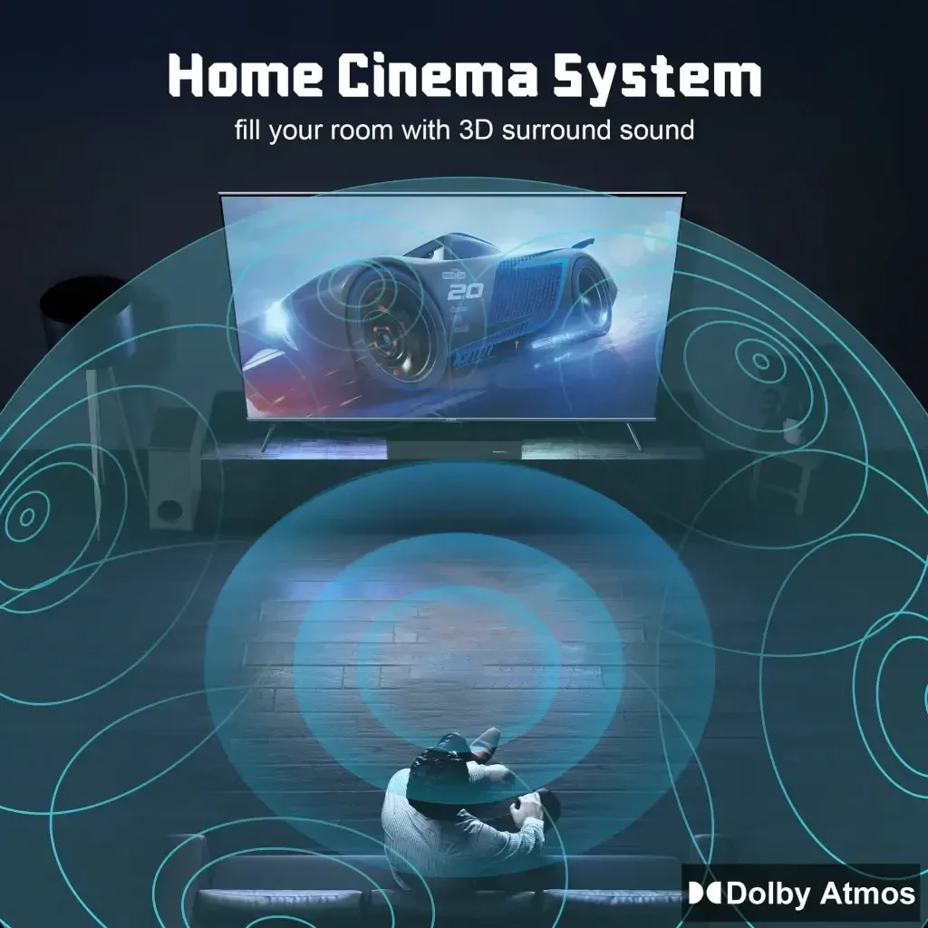 Immerse yourself in a captivating sound journey with the DR.J Professional Sound Bar for TV, a 200W Dolby Atmos soundbar that will bring depth and immersion to your home cinema surround sound system. Effortlessly connect the soundbar to your TV via the provided HDMI cable, supporting 4K HDR passthrough for stunning visual quality. Our soundbars with Dolby Atmos technology are certified, so you can enjoy authentic Dolby audio with confidence.