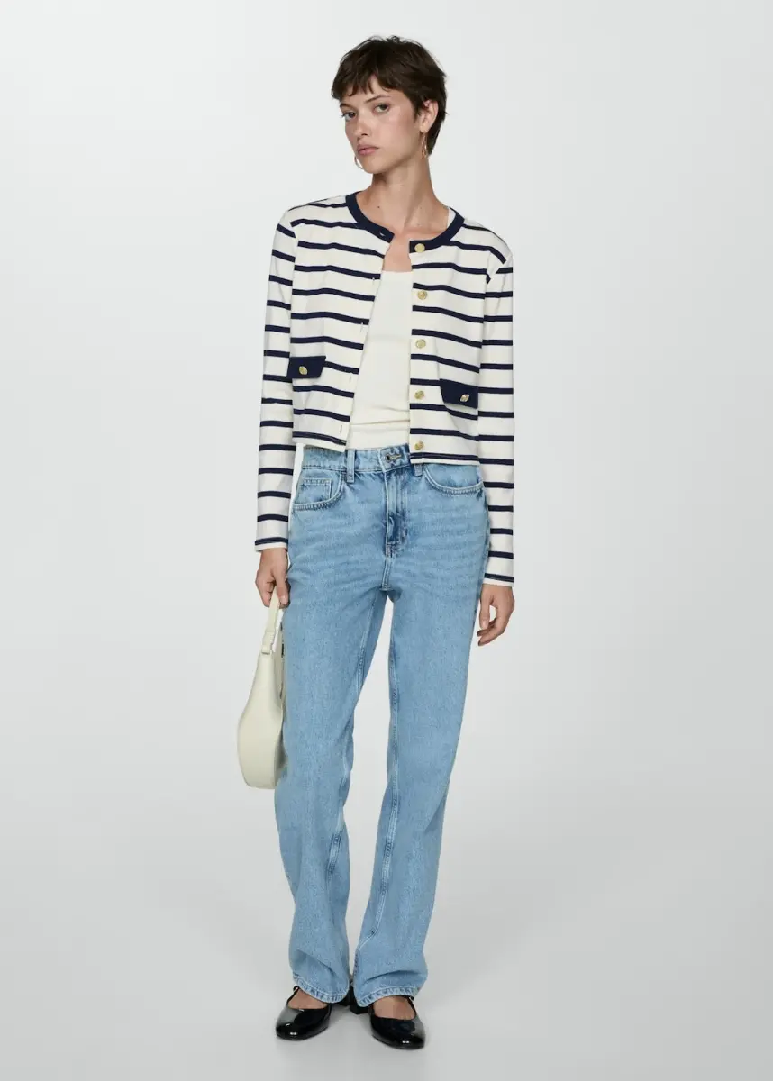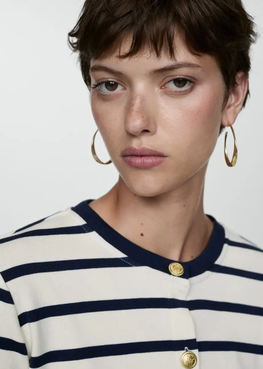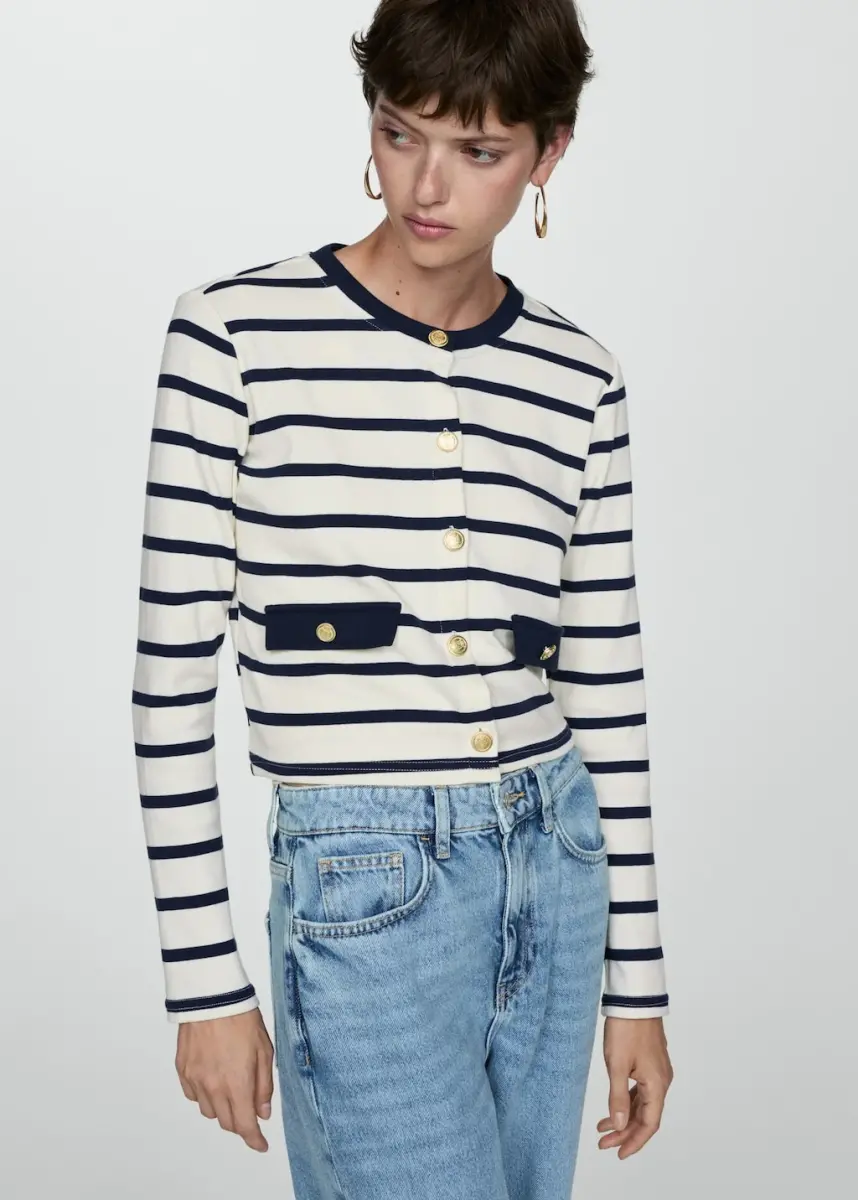 Düğmeli çizgili hırka