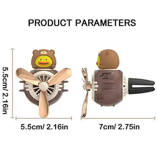 【Creative Shape】The shape of a rabbit and cat pilot and the elements of retro airplanes, it will be nostalgic and romantic, with a cool and interesting new interpretation. and the silicone clip on the back comes with a cross shape design, convenient for you to clip it on the air vent outlet firmly and stably. It satisfies the function of diffused fragrance, and can be rotated at the same time to increase the interest. 【Ingenious and Innovative Design】The funny fan design is inspired by vintage propeller driven aircraft; When your car vents open, the air outlet will drive the propeller and the fragrance will be evenly blown in every corner of the car, the design is very novel and practical. 【Perfect Decoration】Not only a diffuser of fragrance, but also a perfect gift for office and home decoration. The classic cartoon aviator shape and airplane propeller will let you get rid of work troubles and increase your interest. Propeller air freshener measures about 62 x 60 x 53 mm/ 2.44 x 2.36 x 2.09 inches. 【Natural Plant Spices 】Use essential oil fragrant tablets (pe) to diffuse the fragrance. Easy to replace,safe to use and lasting fragrance. Fragrance has the function of deodorization and remove taste. The air outlet drives the propeller to blow the fragrance to all corners of the car. It is mainly suitable for new car owners and smokers. Marine perfume has a mild scent, which can purify the air and meet the taste of the general public. It is suitable for all ages. 【Ideal Gift Choice】The car air fresheners applies airplane element, the workmanship and design are exquisite, Increase driving pleasure. you can apply it as a gift to send to your friends, people who receive it will like it very much.