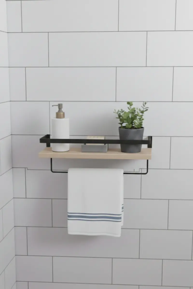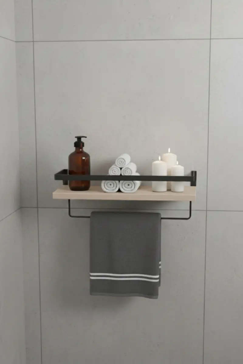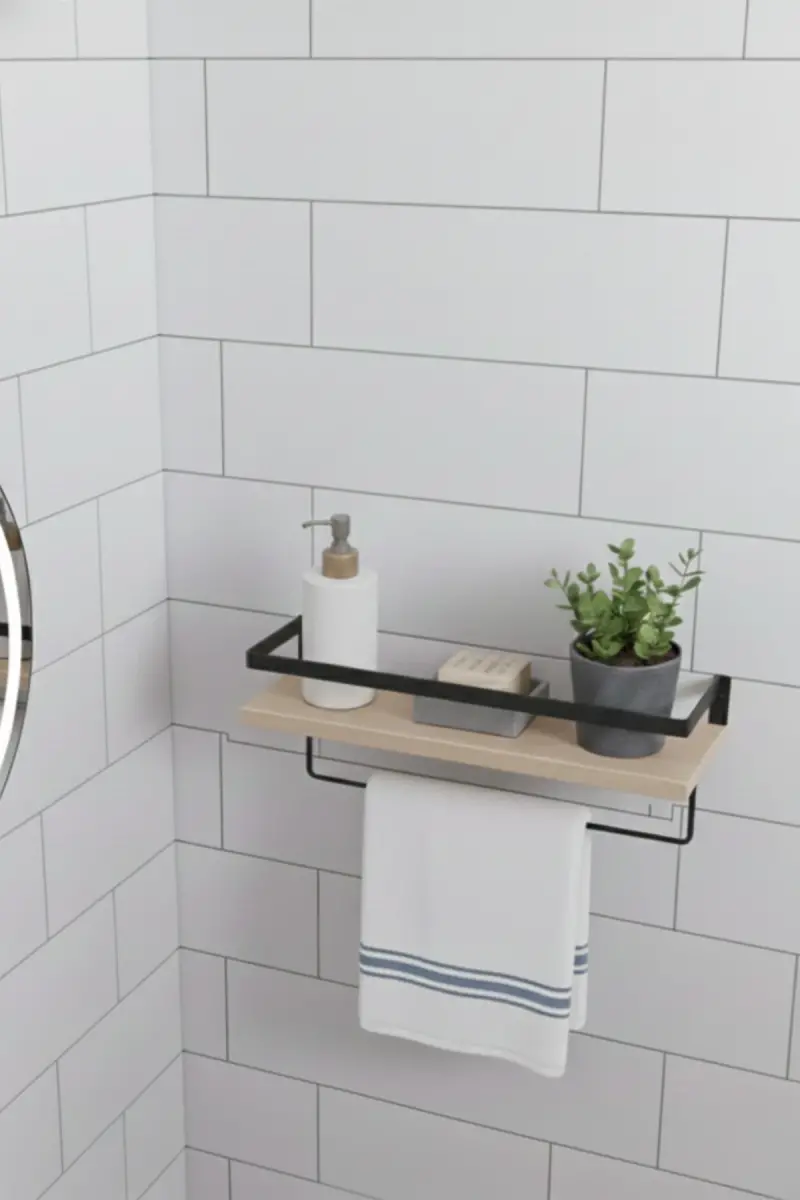 Duvar Rafı Metal Ahşap Banyo Düzenleyici | Havluluk Banyo Rafı Dekoratif Duvar Rafı Çok Amaçlı-AHŞAP TEK ASKILI