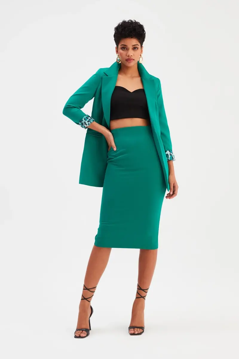 Düz Kalem Etek - Zümrüt-ZÜMRÜT