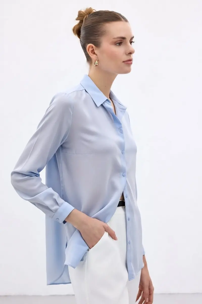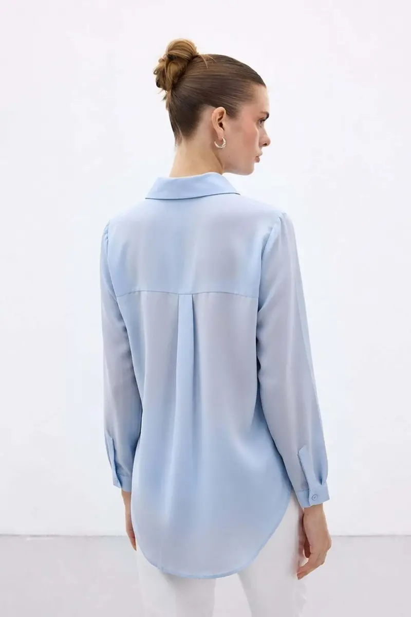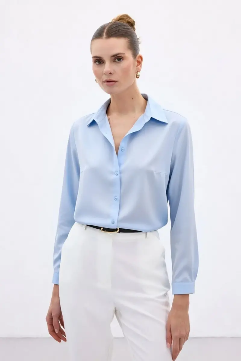Düz Klasik Gömlek - Mavi-Mavi