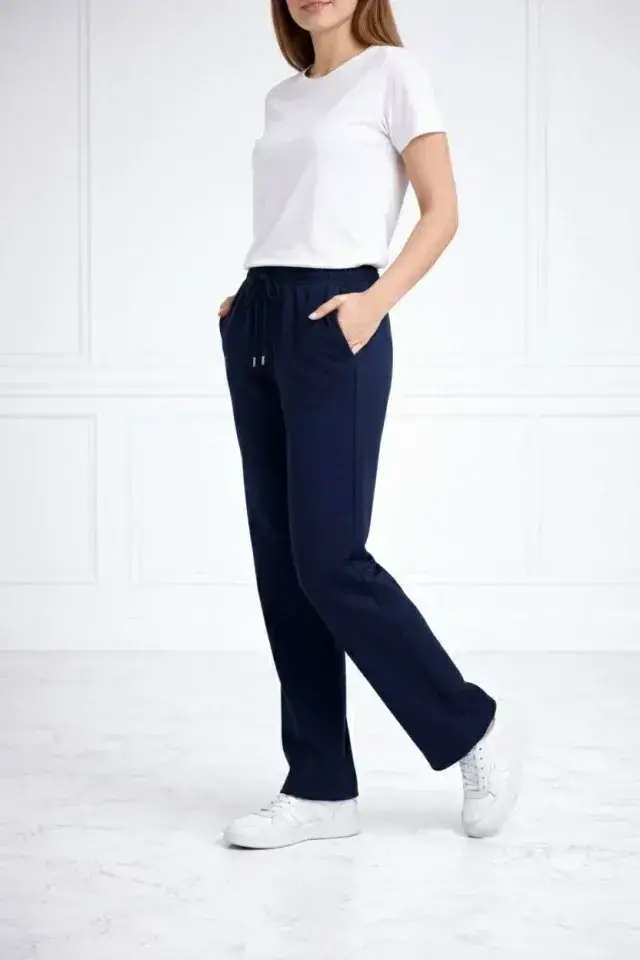 Düz Paça Beli Lastikli İpli Günlük Spor Eşofman Altı Rahat Fit - Lacivert