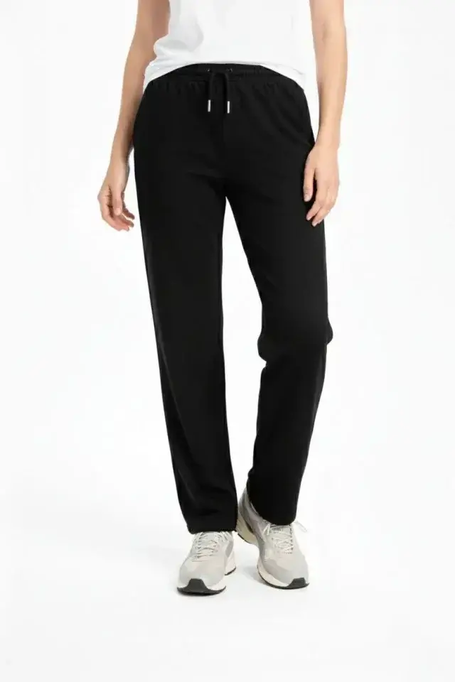 Düz Paça Beli Lastikli İpli Günlük Spor Eşofman Altı Rahat Fit - Siyah