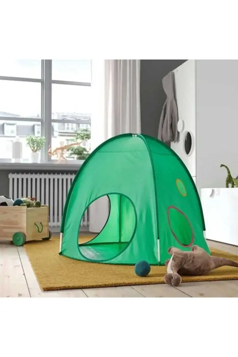 DVARGMAS Yashil 98x80 sm. Bolalar xonasi o'yin chodiri bilan farzandingizning hayoliy dunyosiga eshik oching! Ushbu maxsus dizayndagi o'yin chodiri kichkintoylarga o'zlarining shaxsiy, xavfsiz va qiziqarli maydonlarini yaratishga imkon beradi. Xonaning ichida xona tuyg'usini beruvchi ushbu chodir, bolalarning hayollarini erkin qo'yib, o'yinlar o'ynashi va dam olishi mumkin bo'lgan boshpana taklif etadi. Bundan tashqari, u ishlatilmaganda osongina olib tashlanishi va saqlanishi mumkinligi sababli, amaliy foydalanish imkoniyatini beradi. DVARGMAS o'yin chodiri bolalarni jismonan faol bo'lishga undaydi, shu bilan birga motorli ko'nikmalarini va muvofiqlashtirishni yaxshilashga yordam beradi. Tunnel bilan birlashtirish imkoniyati tufayli o'yin maydonini yanada kengaytirishingiz, farzandingizning sarguzashtga to'la lahzalarni yashashini ta'minlashingiz mumkin. Bolalar bilan hamkorlikda ishlab chiqilgan ushbu chodir, ularning fikr va g'oyalarini ifoda etadigan qiziqarli mashg'ulotlarda yuzaga keldi. Ularning fikrlari mahsulotimiz dizaynida muhim rol o'ynadi va nihoyat mutaxassis bo'lgan bolalarning e'tiboriga havola etildi. DVARGMAS o'yin chodiri nafaqat o'yin maydoni, balki farzandingizning rivojlanishiga hissa qo'shadigan, ijodkorligini qo'llab-quvvatlaydigan va ularga maxsus dunyo taqdim etadigan mahsulotdir. Ushbu chodir bilan farzandingizning xonasi, o'yin-kulgi va o'rganish markaziga aylanadi. DVARGMAS o'yin chodiri, bolalarning hayoliy kuchini qo'llab-quvvatlaydigan, ularga yoqimli o'yin tajribasini taqdim etadigan va ota-onalarning xotirjamligini ta'minlaydigan tanlovdir. Farzandingizning baxtli va sog'lom rivojlanishi uchun DVARGMAS Yashil 98x80 sm. Bolalar xonasi o'yin chodirini tanlang!