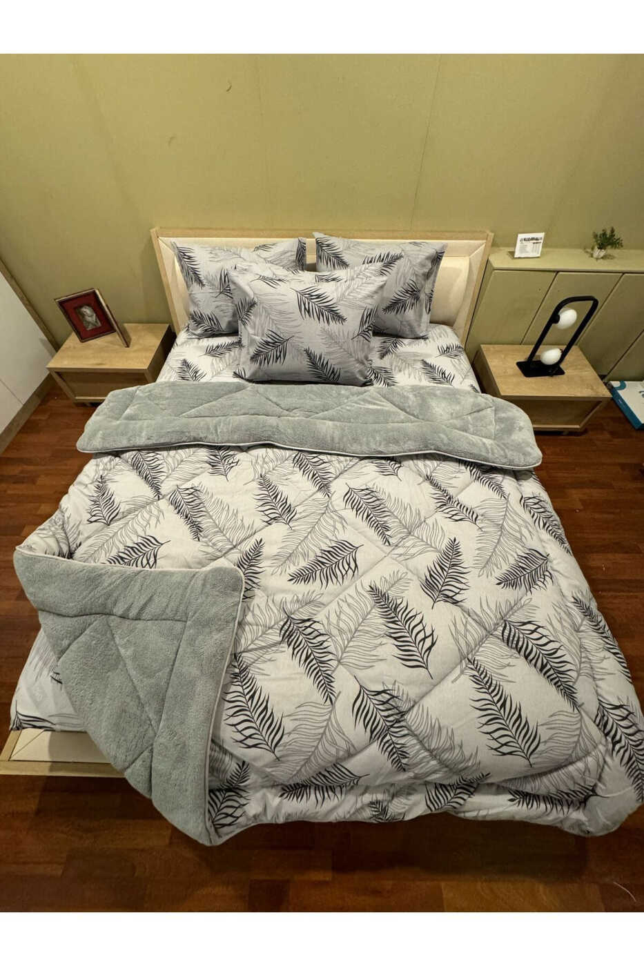 постельный комплект welsoft пушистый, двуспальный комплект, простыня на резинке, серый пух, комфортный сон, спокойный сон, одеяло, подушка, простыня, антиаллергенный, антибактериальный