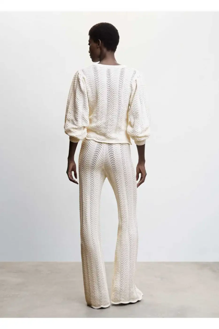 **Брюки с ажурной вязкой**Эти стильные брюки, которые будут отправлены Trendyol, изготовлены из 100% переработанного полиэстера. Эти брюки с плотной и ажурной вязкой имеют дизайн палаццо и эластичный пояс для удобной посадки.**Характеристики продукта:*** 100% переработанный полиэстер* Плотная трикотажная ткань* Ажурная трикотажная ткань* Дизайн палаццо* Эластичный пояс* Длинный фасон* Доступны большие размеры* Также доступно в детской коллекции для девочек**Технические характеристики:*** Длина по внутреннему шву: 76,5 см* Длина бокового шва: 107,0 см**Инструкции по уходу:*** Стирать вручную при температуре не выше 30°C* Не отбеливать* Гладить при температуре не выше 110°C* Не подвергать химчистке* Не сушить в сушильной машине**Примечания:*** Один и тот же товар может продаваться несколькими продавцами.* Trendyol перечисляет товары, имеющиеся в наличии менее 5 единиц, для продажи по ценам кампании.* Trendyol оставляет за собой право отменять заказы более 10 единиц.* Бесплатный возврат в течение 15 дней.