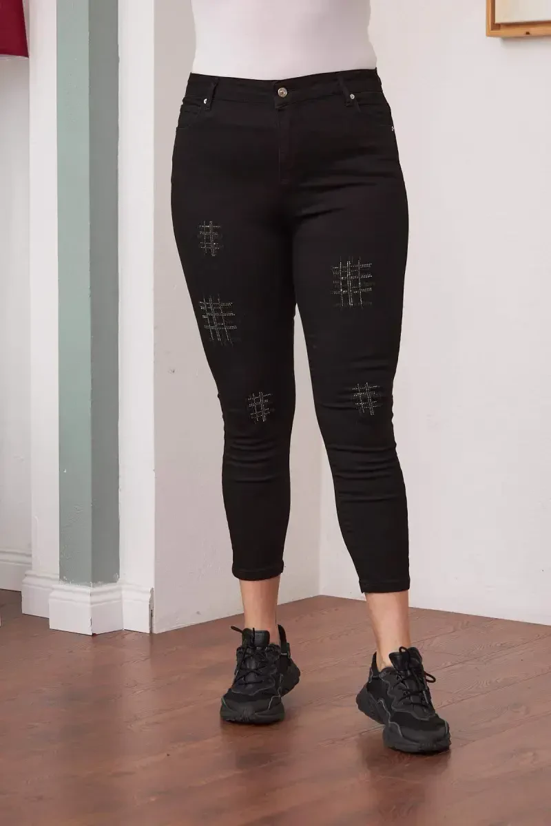 Большие размеры, черные джинсы с каменной отделкой | Стильно и удобно