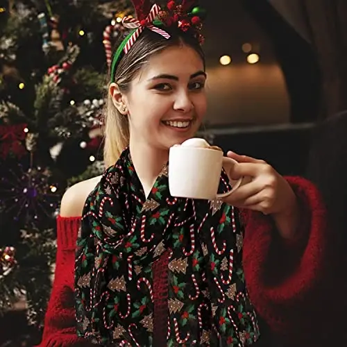 E-Clover Fashion is a lightweight and stylish shawl designed for women. Suitable for use in spring, summer, and winter, this scarf is a candidate to be an indispensable part of your wardrobe. Made of soft and high-quality viscose fabric, it gently touches your skin and offers comfortable use throughout the day. Thanks to its lightweight and breathable structure, it does not weigh you down and allows you to move freely. This eye-catching shawl with its unique design will add joy and vibrancy to your Christmas-themed combinations with its Christmas trees, candy canes, and star flower patterns. These cute patterns make the scarf simple and versatile, while adding attractiveness and charm to your outfit. Thanks to its large size, you can use it with different tying styles and add a different touch to your style. Whether you use it as a stylish accessory around your neck or prefer it as an elegant wrap on your shoulders, it will complement your style in every way. Thanks to its light texture, it is easily portable and does not take up space in your bag. It is an ideal accessory to accompany you on your travels, holidays, or daily use. Also, this stylish scarf can be a great gift option for your loved ones. It will be an unforgettable gift for your closest friends, mother or lover on birthdays, anniversaries or special occasions. E-Clover Fashion scarf is not just an accessory, but also an expression that reflects your style and personality. You can always look stylish and unique with this versatile scarf that you can use at parties, holidays, special occasions, daily activities and many more different situations. Complete your style with E-Clover Fashion scarf, attract attention in every environment and feel special. This scarf is not just a fashion accessory, but also a lifestyle. Produced with E-Clover quality, this scarf will continue to be an indispensable part of your wardrobe for many years. Now rediscover your style with E-Clover Fashion scarf and enjoy every moment. With its softness, lightness and stylish design, this scarf will always make you feel special. Remember, with E-Clover, fashion is not just a choice, it is an expression.