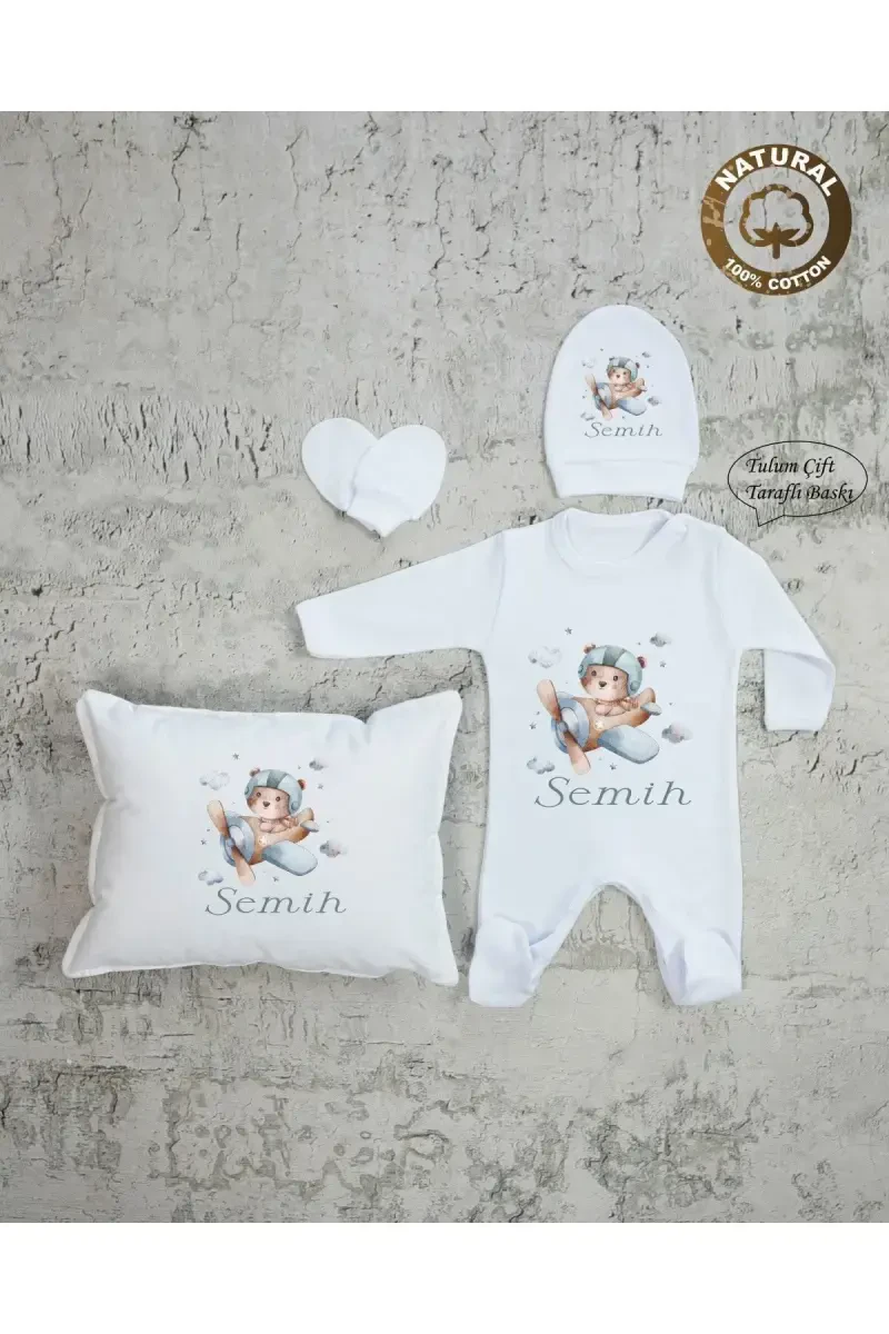 chaqaloq yostiq tulum, kasalxonadan chiqish, shaxsiylashtirilgan sovgʻa, paxta mato, organik bosib chiqarish, shlyapa qoʻlqop toʻplami, ismli chaqaloq toʻplami, Melih Baby, bepul qaytarish, aksiya narxi