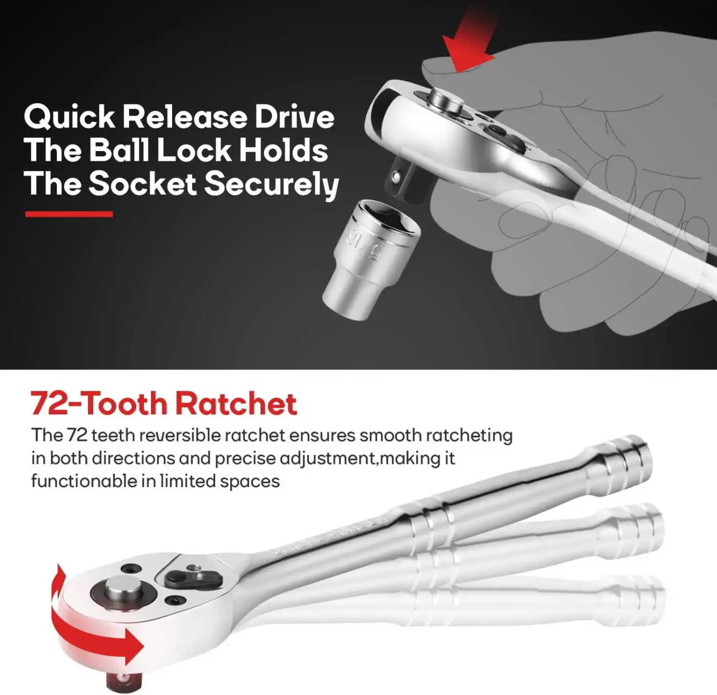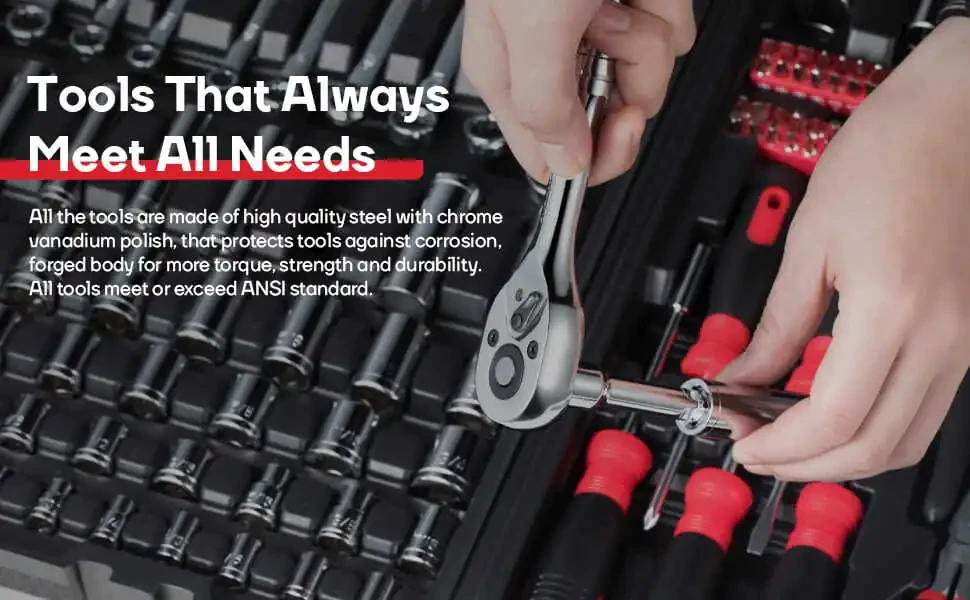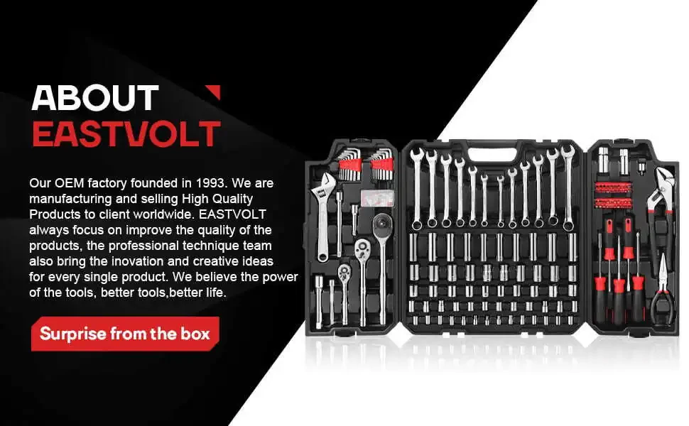 Eastvolt Chrome Vanadium Finish Ko'chma Asboblar To'plami keng ko'lamli dasturlarga ega bo'lgan keng qamrovli to'plamdir. Avtomobil ta'mirlash, uyni ta'mirlash va umumiy texnik xizmat ko'rsatish uchun ideal. Yuqori sifatli materiallar va mustahkam tashish sumkasi uzoq umr ko'rishni va ishonchli foydalanishni ta'minlaydi.