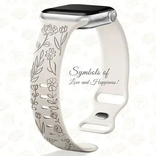 Elevate your style with the Easuny 8-Pack Women's Bands for Apple Watch. This exclusive collection is perfectly compatible with Apple Watch Series 10, 9, 8, 7, 6, 5, 4, 3, Ultra 2/1, SE, and SE 2nd Generation models in sizes 38mm, 40mm, 41mm, 42mm, 44mm, 45mm, 46mm, and 49mm. Crafted from soft silicone material, these stylish floral bands are designed to add an elegant touch to both everyday wear and special occasions. Each band is carefully adorned with rose and cheerful sunflower patterns, representing a perfect blend of expert craftsmanship and trendy colors. Whether you're completing your chic look at a formal event or adding a modern twist to your daily attire, these bands will always help you reflect your style.Easuny silicone Apple Watch bands are made from high-quality silicone and are skin-friendly. They offer a comfortable fit throughout long work marathons, intense workouts, and even while you sleep. With their waterproof, lightweight, and durable construction, they are an affordable yet premium accessory option for your Apple Watch. These bands won't weigh down your wrist, ensuring all-day comfort.With these versatile bands, you can create a style suitable for any occasion. Dazzle at a formal dinner with an elegant rose-adorned band, or showcase an energetic look with vibrant sunflowers at a weekend picnic. Easuny Apple Watch bands are not just an accessory; they are a form of expression that tells your personal style and story. Each pattern reflects your uniqueness and originality.At Easuny, we take pride in offering the highest quality smartwatch accessories, and therefore, we meticulously inspect our products. Each band undergoes detailed quality control to guarantee superior clarity, comfort, and luxury. For your peace of mind, we offer a 180-day warranty on our products. Customer satisfaction is always our priority, and your happiness is most valuable to us. Therefore, enjoy quality, style, and confidence with Easuny.