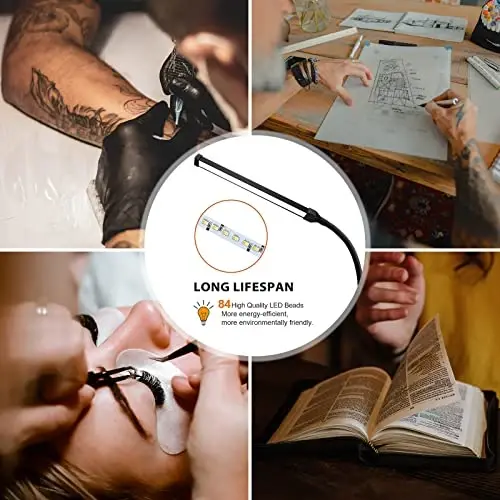 The standing floor lamp present 2 light modes, cold light and warm light for different environment. 2 brightness options does not consumes a lot of electricity, it is energy saving. Classic push button control bring you back to childhood. The LED pole lamp with adjustable main light pole, you can adjust 3 different height. 360° rotate flexible neck adjustable different angles for light direction, which is a convenient addition to any spot of any room. The floor lamp with USB plug on the end, you can take this lamp into any room and position it where ever, using a battery charger box when a plug is not nearby. The modern floor lamp is slim stand stylish, structural design and super lightweight. Easy to assemble within 1-2 mins, easy to move the lamp between rooms without buying lots of lights if you have limited space. It is not only floor lamp but also task lighting. It is reading lamp, colleage lamp, office lamp, bedroom floor lamp, living room floor lamp. You can put it in various places around the house. LED lamp eyelash lamp for eyelash extensions.