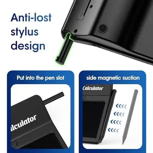 Çok İşlevli Hesap Makinesi: Bu iş hesap makinesi, temel bir hesap makinesi, not alan bir kalem ve bir yazı ekranı olmak üzere üç işlevi bir araya getirir. Kullanıcıların hesaplamaları tamamlamasına ve notları ve çizimleri kolayca kaydetmesine yardımcı olur. Ofis, iş, okul, mağaza ve ev kullanımı için mükemmeldir. Banka personeli, veri analistleri ve finansal hesaplamalar için idealdir.