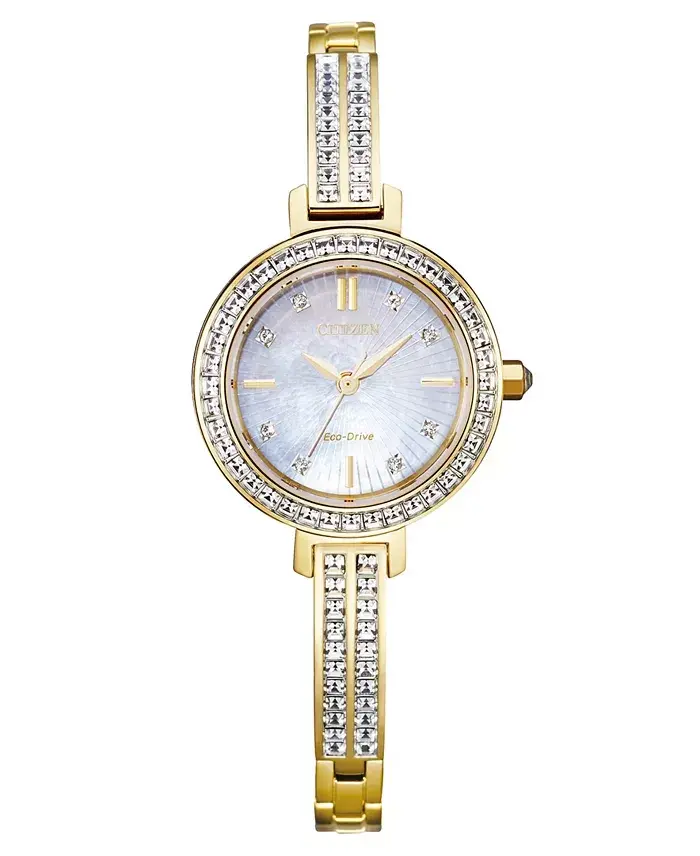 Eco-Drive, ayollar qo'l soati, oltin rangli, zanglamaydigan po'lat, kristall, 25mm, suv o'tkazmaydigan, zamonaviy, nafis, kundalik foydalanish