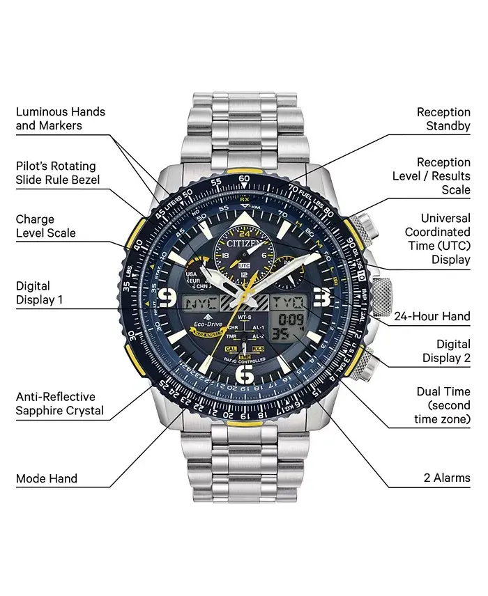 Bu Citizen Eco-Drive Promaster Skyhawk A-T saat, satın alma tarihinden itibaren 5 yıl sınırlı üretici garantisi kapsamındadır. Saatinizi Citizen'a kaydettirerek ek 1 yıl garanti kazanabilirsiniz. Saatiniz, resimde gösterilen orijinal kutusuyla birlikte gelir. Modazone WorryNoMore® Mücevher ve Saat Koruma programına kaydolarak saatinizi ek güvence altına alabilirsiniz. Daha fazla bilgi için 1-800-BUY-MACY (1-800-289-6229) numaralı telefondan Müşteri Hizmetleri ile iletişime geçebilir, Modazone Chat fonksiyonunu kullanabilir veya herhangi bir Modazone mağazasını ziyaret edebilirsiniz. Fotoğraf büyütülmüş ve/veya geliştirilmiş olabilir.