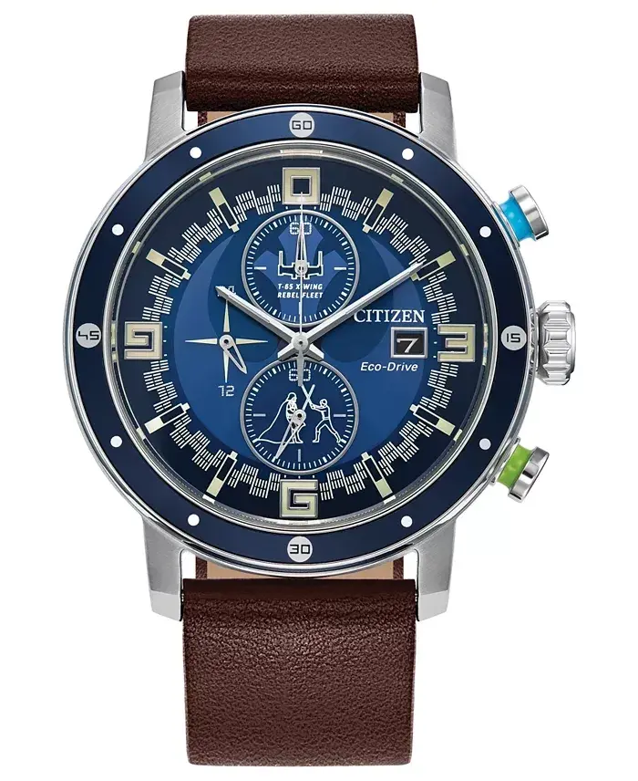 Citizen Eco-Drive teknolojisi, saatin ışık enerjisiyle şarj olmasını sağlayarak pil değiştirme ihtiyacını ortadan kaldırır. Bu sayede çevreye duyarlı bir kullanım sunar. Saatin kronograf özelliği, hassas zaman ölçümleri yapmanıza olanak tanırken, tarih göstergesi günlük hayatınızı kolaylaştırır. 100 metreye kadar su geçirmezlik özelliği sayesinde, su sporları yaparken veya günlük aktivitelerinizde rahatlıkla kullanabilirsiniz. Kahverengi deri kayış, bileğinizde konforlu bir his sağlarken, şık tasarımıyla da stilinizi tamamlar. Star Wars temalı bu özel tasarım saat, hem kendiniz için mükemmel bir hediye, hem de Star Wars tutkunu sevdikleriniz için unutulmaz bir armağan olabilir. Saatin 5 yıl sınırlı üretici garantisi, uzun ömürlü ve güvenilir bir ürün olduğunu gösterir. Citizen kalitesi ve Star Wars büyüsü bir araya geldiğinde ortaya çıkan bu eşsiz saat, koleksiyonunuzun en değerli parçalarından biri olacak.
