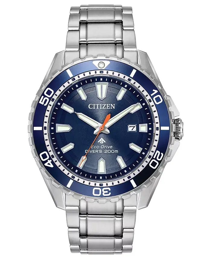 Eco-Drive saat, dalış saati, paslanmaz çelik saat, WR200 saat, çizilmez cam saat, vidalı tepe saat, tek yöne dönebilen bezel, ışıklı ibreli saat, erkek kol saati, su geçirmez saat
