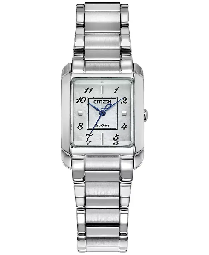 This elegant women's watch, powered by Eco-Drive technology, combines style and sustainability. The Bianca model, with its silver-tone stainless steel bracelet and 28mm diameter case, adds elegance to every wrist.