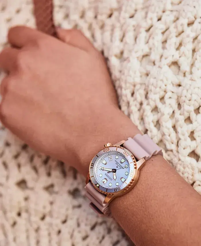 Приготовьтесь погрузиться в глубины подводного мира с женскими часами Citizen Eco-Drive Promaster Dive с розовым ремешком! Эти эксклюзивные часы для дайвинга, являющиеся частью инновационной серии Promaster от Citizen, сочетают в себе стиль и превосходные характеристики. Благодаря технологии Eco-Drive, которая получает энергию от природы, вы можете забыть о замене батарей и наслаждаться экологичным использованием. Эти часы с розовым полиуретановым ремешком и элегантным дизайном станут идеальным выбором для женщин, ведущих активный образ жизни. Корпус из нержавеющей стали в розовых тонах гарантирует долговечность часов, а минеральное стекло обеспечивает превосходную защиту от царапин. Серебристый циферблат и удобный индикатор даты обеспечивают стильное и функциональное использование. Независимо от того, являетесь ли вы профессиональным дайвером или просто любите водные виды спорта, эти часы станут вашим идеальным спутником как под водой, так и на суше. Благодаря водонепроницаемости до 200 метров их можно безопасно использовать в любых водных видах деятельности. Технология Eco-Drive позволяет заряжать часы от солнечного или искусственного света, обеспечивая бесперебойную работу в течение многих лет. Таким образом, вы делаете экологически сознательный выбор и избавляетесь от постоянных затрат на замену батарей. Женские часы Citizen Eco-Drive Promaster Dive с розовым ремешком, сочетающие в себе стиль, долговечность и экологически чистые технологии, станут идеальным аксессуаром для ваших подводных приключений. Наслаждайтесь тем, что отражаете свой стиль и в то же время вносите свой вклад в природу.