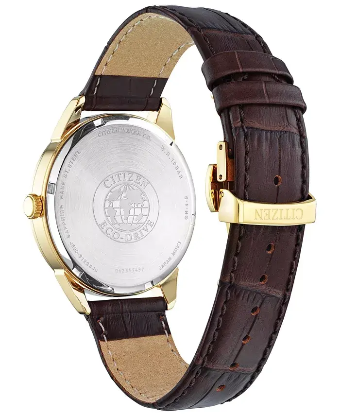 Eco-Drive Men's Watch | Brown Leather & Gold Case | No More Battery Worries!