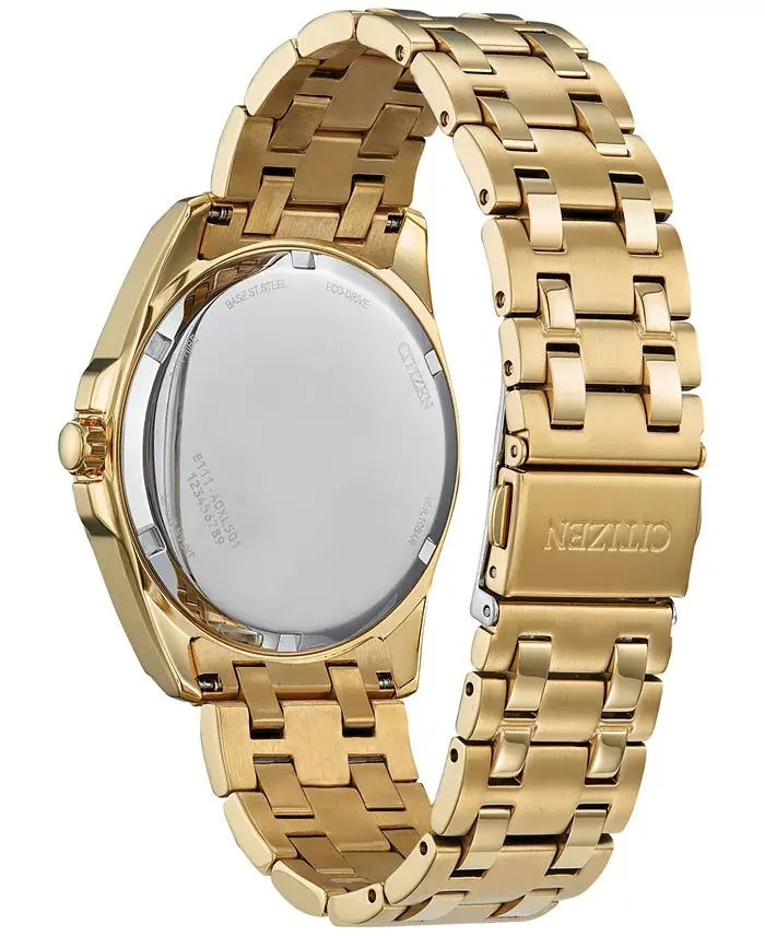 The Citizen Eco-Drive Men's Peyten Gold-Tone Stainless Steel Bracelet Watch is a stylish and environmentally friendly watch option that you can use for many years without the hassle of battery replacement. To extend the life of your watch, it is recommended that you clean it regularly and avoid exposing it to direct sunlight.