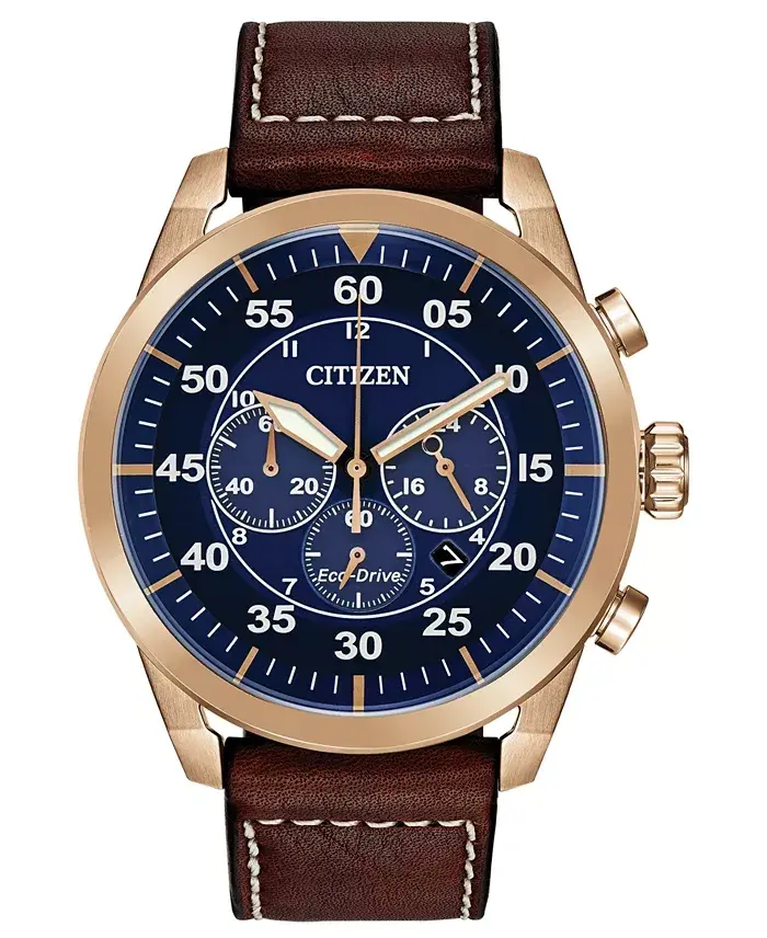 Eco-Drive Men's Chronograph Avion Brown Leather Strap Watch 48mm-Brown