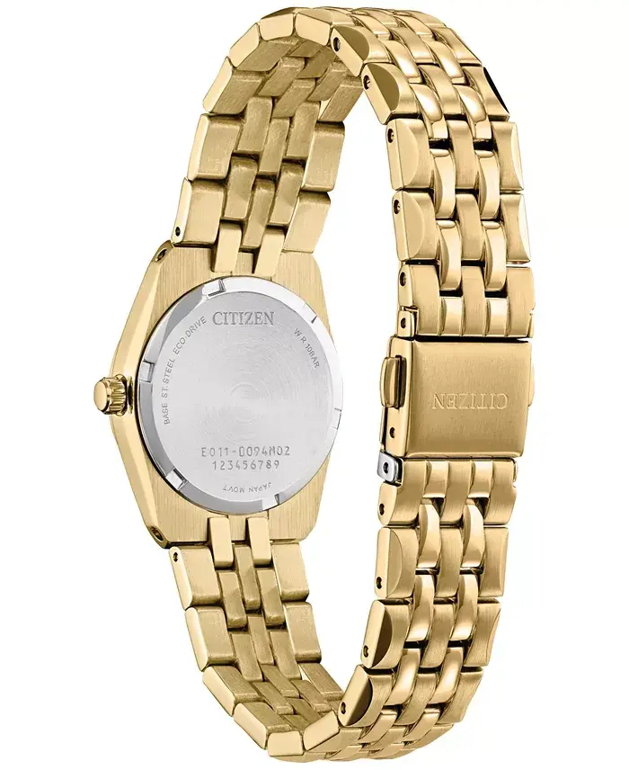 Discover the perfect harmony of elegance and sustainability with the Citizen Eco-Drive Women's Corso Diamond watch. This eye-catching timepiece combines style and eco-friendly technology, allowing you to reflect your style while making an environmentally conscious choice. The gold-tone stainless steel case and bracelet give the watch a warm and luxurious look, while the diamond details (1/10 ct. t.w.) on the case offer a sparkling touch. The 28 mm case diameter provides an elegant and feminine look. Thanks to Eco-Drive technology, the watch is powered by any light source and eliminates the need for battery replacement. This allows you to make an environmentally friendly choice and ensures that your watch is always running. The Corso series is known for its timeless design and superior craftsmanship. This model combines classic and modern lines to suit any style. Whether you combine it with your daily outfits or a stylish dress for your special occasions, this watch will always highlight your elegance. The solar-powered mechanism ensures that the watch is long-lasting and performs reliably. Thanks to its water resistance, you can easily use it in daily life. The Citizen Eco-Drive Women's Corso Diamond watch is not just a time teller, but also a style statement. Feel special with this watch and experience the pride of making an environmentally conscious choice. Thanks to its timeless design and superior quality, this watch will be a valuable accessory that will accompany you for years. With its sparkling diamonds, gold-tone stainless steel and Eco-Drive technology, this watch is a jewel that adorns every woman's dreams. Citizen's Corso series combines elegance and quality to offer you an unforgettable experience.