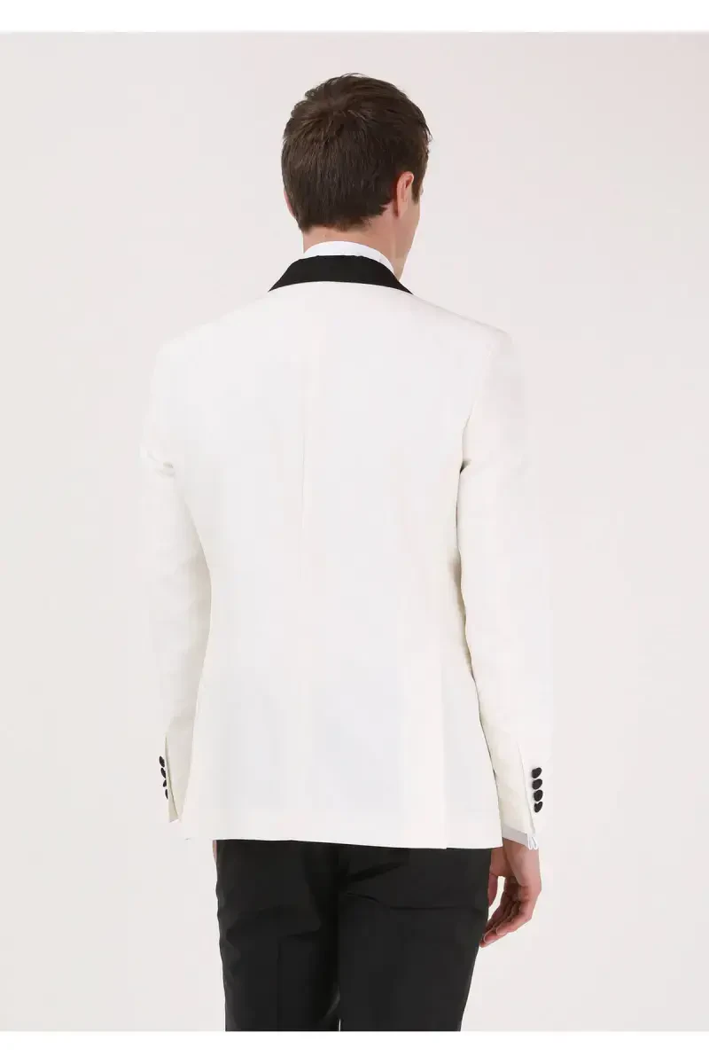 With its timeless elegance and modern cut, the Ecru Plain Modern Fit Shawl Collar Woven Tuxedo Suit is a perfect choice for your special occasions and formal invitations. This sophisticated suit is made of high-quality woven fabric and offers breathability and softness thanks to its 58% viscose and 42% pure material composition, providing comfort throughout the day. The shawl collar design adds a classic and elegant look, while the modern fit cut perfectly embraces the body lines, creating a flawless silhouette. The plain ecru color offers versatile use and can be easily combined with different accessories and shoes. This suit is an ideal choice for modern men who seek both elegance and comfort. Presented to you with the assurance of RAMSEY, this product will take your elegance to the next level. This suit, which you can comfortably use both on special occasions and in your business life, will be one of the indispensable pieces of your wardrobe. Thanks to its durable fabric, this suit, which will maintain its first-day elegance for many years, is a piece worth investing in. The modern and fit cut of the product perfectly reveals your body lines, while the shawl collar detail also adds a stylish and sophisticated look. If you want to look stylish and elegant on your special days, the Ecru Plain Modern Fit Shawl Collar Woven Tuxedo Suit is for you!