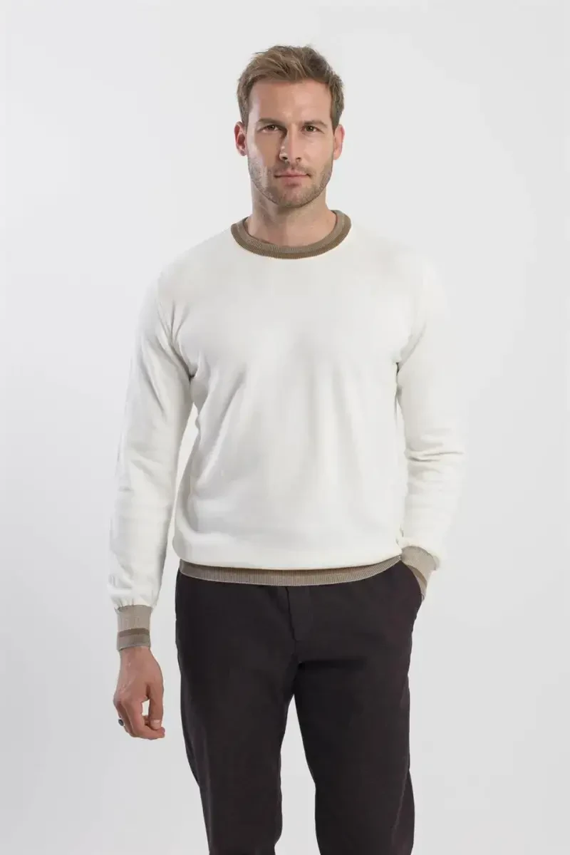 Combine elegance and comfort in your wardrobe with the Ecru Slim Fit Crew Neck Knit Sweater. This special design sweater has been carefully crafted to meet the needs of the modern man who wants to feel stylish and comfortable. The slim fit cut creates an elegant silhouette with its fitted structure, while the crew neck detail adds a sophisticated touch to the sweater. The ecru color easily adapts to all kinds of combinations, offering the feature of appealing to different styles. Whether you combine it with jeans in daily use or with fabric trousers for a more stylish look, you can make your style speak in any environment.This knit sweater offers superior comfort thanks to its 50% cotton and 50% acrylic blend. The natural softness of cotton gently touches your skin, while the acrylic fibers add durability and longevity to the sweater. In this way, the sweater retains its shape for a long time and minimizes the risk of problems such as shrinkage or deformation after washing. The breathable structure of the cotton acrylic blend prevents sweating problems throughout the day and keeps your skin comfortable. It keeps you warm and prevents sweating thanks to its air permeability, making it a wearable option in all seasons.The Ecru Slim Fit Crew Neck Knit Sweater not only offers a stylish look, but also provides ease of use and practicality. It is very easy to clean thanks to its machine washable feature. Its low temperature ironable structure also increases ease of use. It offers long-lasting use thanks to its quality material and workmanship. This sweater will be one of the indispensable pieces of your wardrobe and will always provide you with a stylish and comfortable look. The M size on the mannequin best shows the slim fit cut and fitted structure of the product. You can experience this elegance by choosing the one that suits your size. The Ecru Slim Fit Crew Neck Knit Sweater is a perfect choice to elevate your daily style and reflect your unique style.