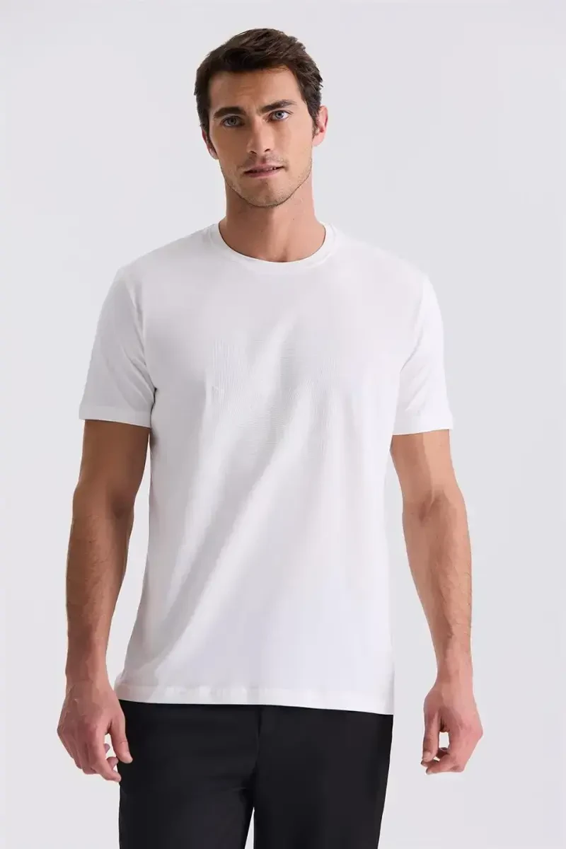 Kundalik hayotda ham, maxsus kunlarda ham kiyishingiz mumkin bo`lgan Ekru Slim Fit velosiped yoqa futbolka sizning garderobingizning ajralmas qismiga aylanadi.