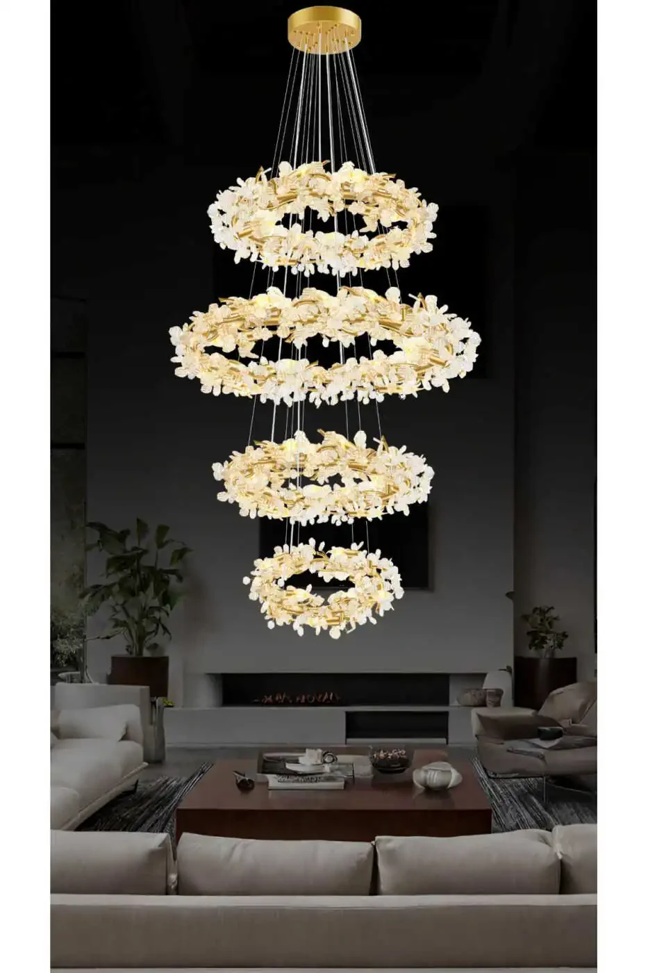 Edera 4'lü Sarkıt Avize, modern ve şık tasarımı ile yaşam alanlarınıza benzersiz bir atmosfer kazandırmak için mükemmel bir seçimdir. Yüksek tavanlı salonlar, oteller, lobi alanları ve daha birçok mekanda etkileyici bir görünüm yaratmak için idealdir.