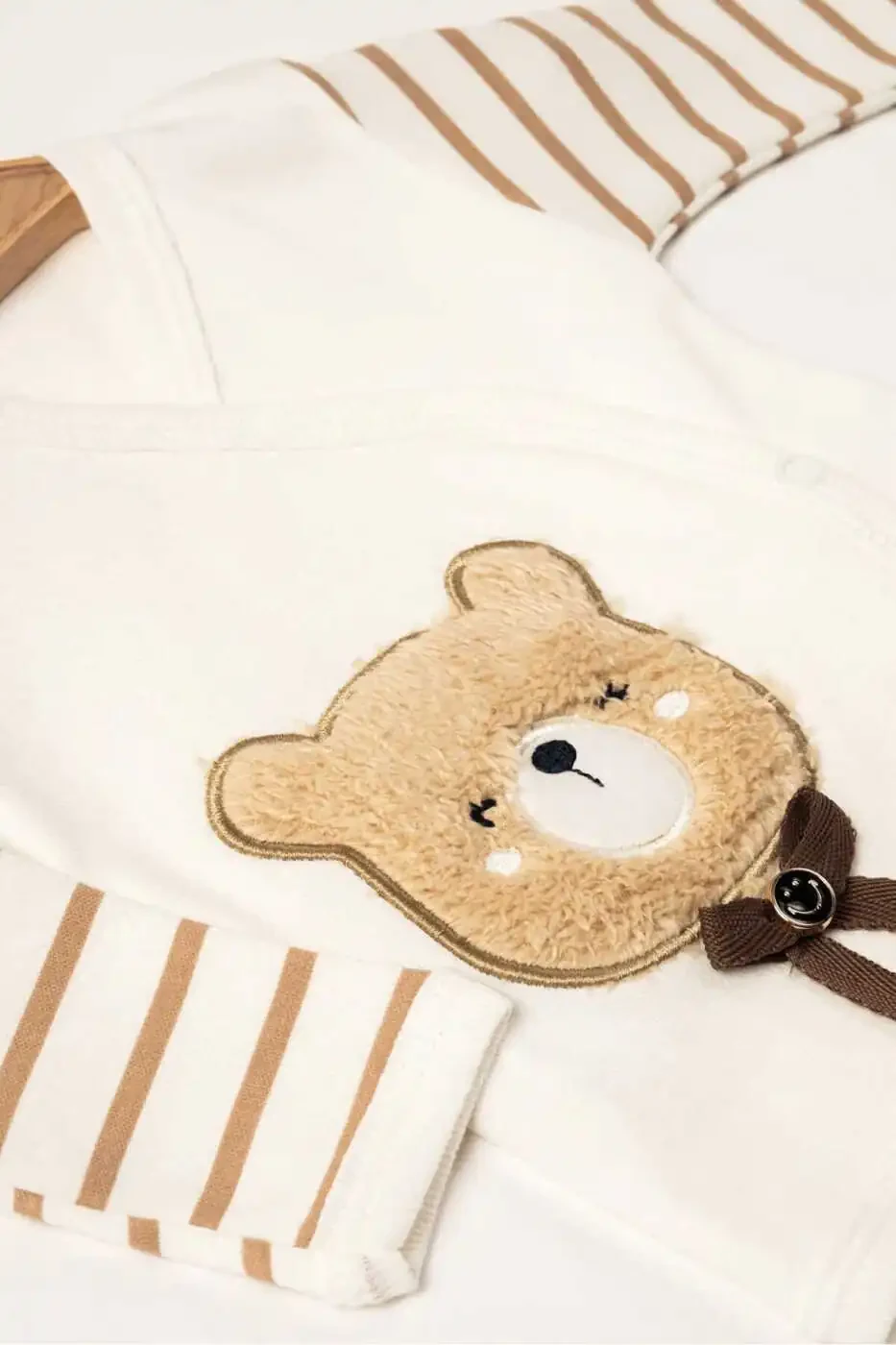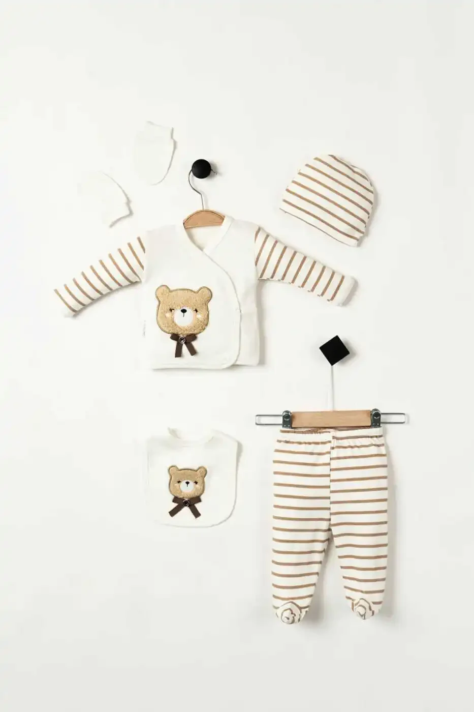Yoqimli ayiqcha naqshli dantelli kiyimlar, chaqalog'ingizning shirinligiga shirinlik qo'shadi va tug'ruqxonadan chiqishning zavqini yanada oshiradi. Mos keladigan o'lchami chaqalog'ingizning dastlabki kunlarini qulay tarzda o'tkazishini ta'minlaydi.