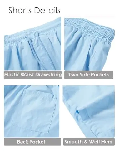 • Short features: Slanted side pockets and one back pocket, elastic waistband and adjustable drawstring.