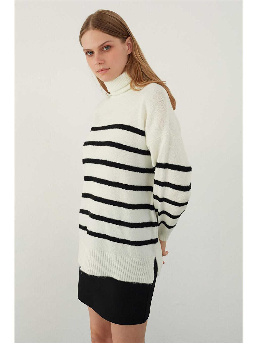 Создайте стильный и комфортный образ в своем гардеробе с помощью экрю трикотажного свитера в полоску с воротником "рыбацкая сеть". Этот свитер с современными линиями и мягкой текстурой позволит вам отразить свой стиль в любой обстановке. Благодаря составу пряжи (81% акрил и 19% полиэстер) он согревает и обеспечивает долговечность. Широкий крой обеспечивает свободу движений и комфорт, а длинные рукава согревают в холодную погоду. Воротник "рыбацкая сеть" защищает шею от ветра и придает элегантный вид. Полосатый узор придает свитеру современный вид и позволяет создавать различные комбинации. Вы можете носить его повседневно с джинсами или комбинировать с элегантной юбкой для особого случая, чтобы подчеркнуть свой стиль. Этот свитер от Sherin - не просто одежда, а выражение стиля. Важно, что на модели надет размер S, чтобы показать, как сидит изделие. Примите во внимание, что рост модели 1,75, обхват груди 87, обхват талии 63 и обхват бедер 90, чтобы более точно определить свой размер. Ширина груди свитера размера S составляет 56 см, длина рукава 47 см, а длина 66 см. Ширина груди размера M составляет 58 см, длина рукава 47 см, а длина 68 см. Ширина груди размера L составляет 60 см, длина рукава 47 см, а длина 70 см. Эти размеры помогут вам выбрать наиболее подходящий размер. Следуя инструкциям по стирке, вы можете продлить срок службы изделия и сохранить его первоначальный вид. Рекомендуется деликатная стирка при максимальной температуре 30°C с изнаночной стороны. Это предотвратит повреждение структуры ткани и выцветание цветов. Цвет экрю идеально сочетается со всеми видами комбинаций и станет незаменимой частью вашего гардероба. Этот свитер не только согревает, но и дополняет ваш стиль. Это идеальный выбор для женщин, которые хотят быть одновременно удобными и стильными.