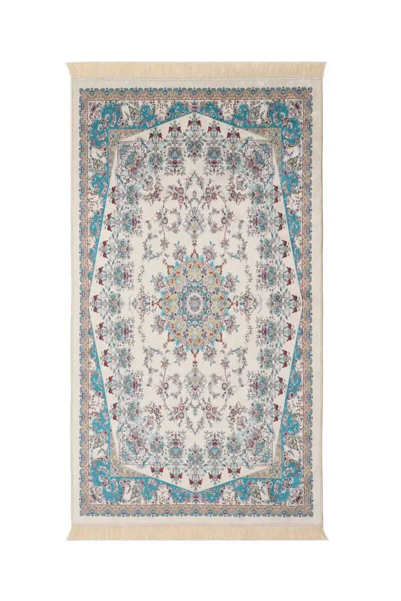 Ковер-циновка для молитвы из экрю-бархата с шелковистой фактурой, бросающимися в глаза цветами и замысловатыми турецкими и китайскими мотивами добавит в ваш домашний декор элегантности и аутентичности. Размеры коврика для молитвы 65x115 см идеально подходят для вашего удобства, а его бархатистая текстура придает роскошное ощущение вашим ногам.