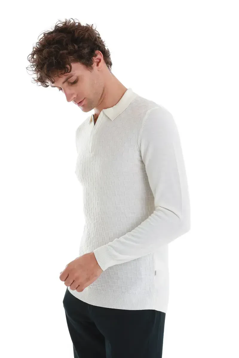 Экрю Прямой крой Жаккардовый Трикотажный шерстяной свитер-поло - идеальный выбор для мужчин, которые не хотят жертвовать стилем в холодную погоду. Этот свитер особого дизайна сочетает в себе комфорт и современный внешний вид, что делает его незаменимой вещью в вашем гардеробе. Этот трикотажный свитер, изготовленный из высококачественных материалов, обеспечивает длительный срок службы и нежное прикосновение к вашей коже. Цвет экрю сочетается с любым нарядом и подходит для разных стилей. Его можно легко носить как повседневно, так и для особого ужина. Прямой крой обеспечивает облегающий силуэт, не ограничивающий свободу движений. Деталь воротника-поло добавляет классический шик, а жаккардовый трикотажный узор придает свитеру неповторимый вид. Эти детали придают свитеру современный и изысканный вид, отличая его от других трикотажных свитеров. Смесь шерсти и акрила повышает теплоизоляцию свитера и обеспечивает простоту ухода. Естественное тепло шерсти и долговечность акрила объединяются, чтобы свитер долго сохранял свою форму. Этот свитер не только обеспечивает стильный внешний вид, но и комфорт при носке. Сохраняя тепло в холодные зимние дни, он позволяет вам выделяться в любой обстановке, не жертвуя стилем. Экрю Прямой крой Жаккардовый Трикотажный шерстяной свитер-поло станет выбором стильных мужчин и тех, кто ищет комфорт. Этот свитер, который дополнит ваш повседневный шик, станет одной из самых любимых вещей в вашем гардеробе. Это отличный выбор, чтобы согреться и подчеркнуть свой стиль. Этот свитер, идеальный для тех, кто хочет согреться и выглядеть стильно зимой, выделяется своим качеством и стилем. Этот особый дизайн, сочетающий в себе стиль и комфорт, станет незаменимой частью вашего гардероба. Более того, благодаря своей легко комбинируемой структуре, он позволяет вам всегда выглядеть стильно, адаптируясь к разным стилям. Прекрасный выбор для тех, кто хочет испытать тепло и стиль в холодные зимние дни. С этой особенной вещью, которая должна быть в вашем гардеробе, вы всегда сможете вывести свой стиль на шаг вперед. Этот свитер, в каждой детали которого чувствуется качество и забота, станет одной из самых любимых вещей в вашем гардеробе на долгие годы. Независимо от того, с чем вы его сочетаете: с джинсами или элегантными брюками, он всегда позволит вам выразить свой стиль.