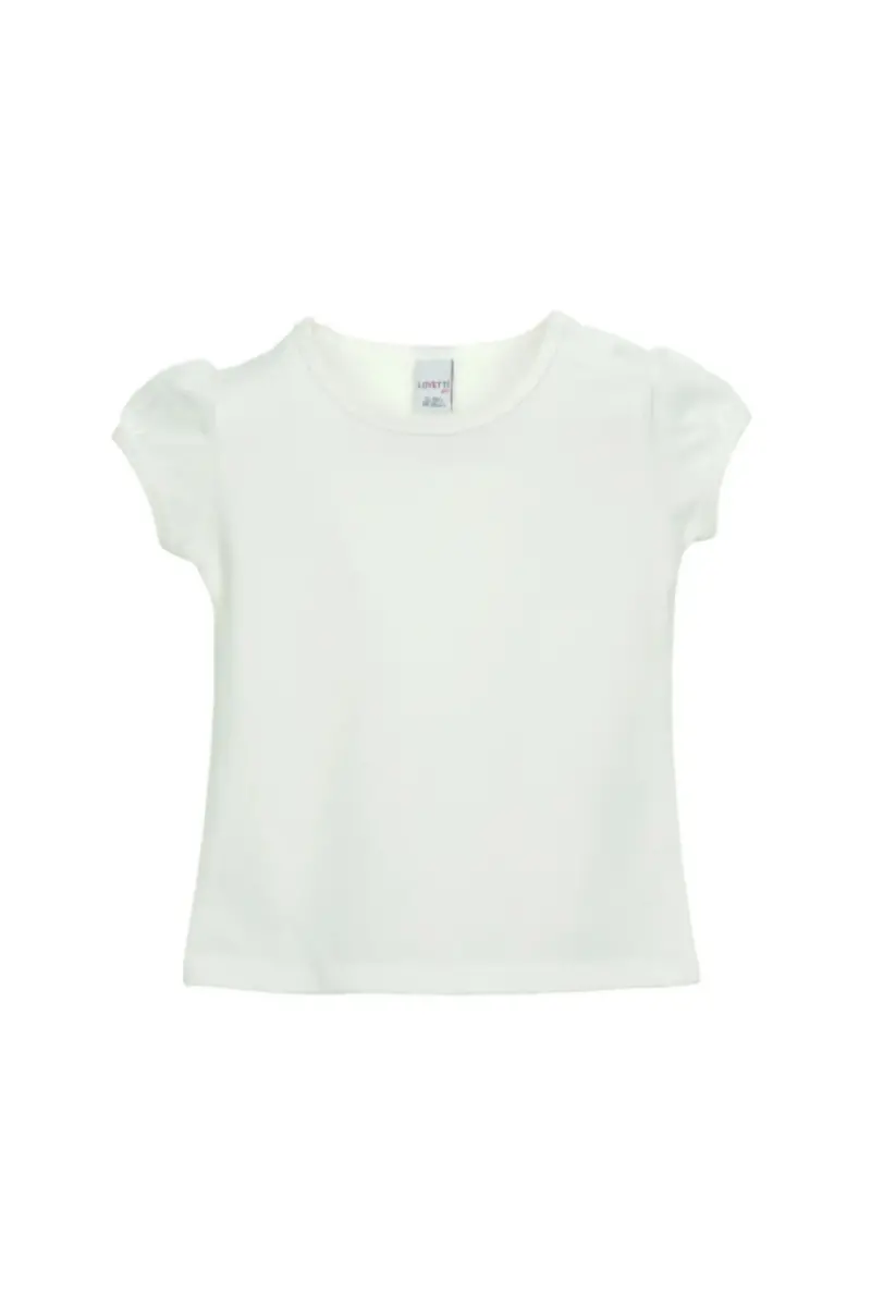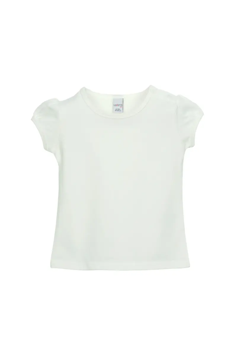 Ekru Basic Kız Bebek Çıtçıtlı Sıfır Yaka Karpuz Kol Tişört-GARDENIA ECRU
