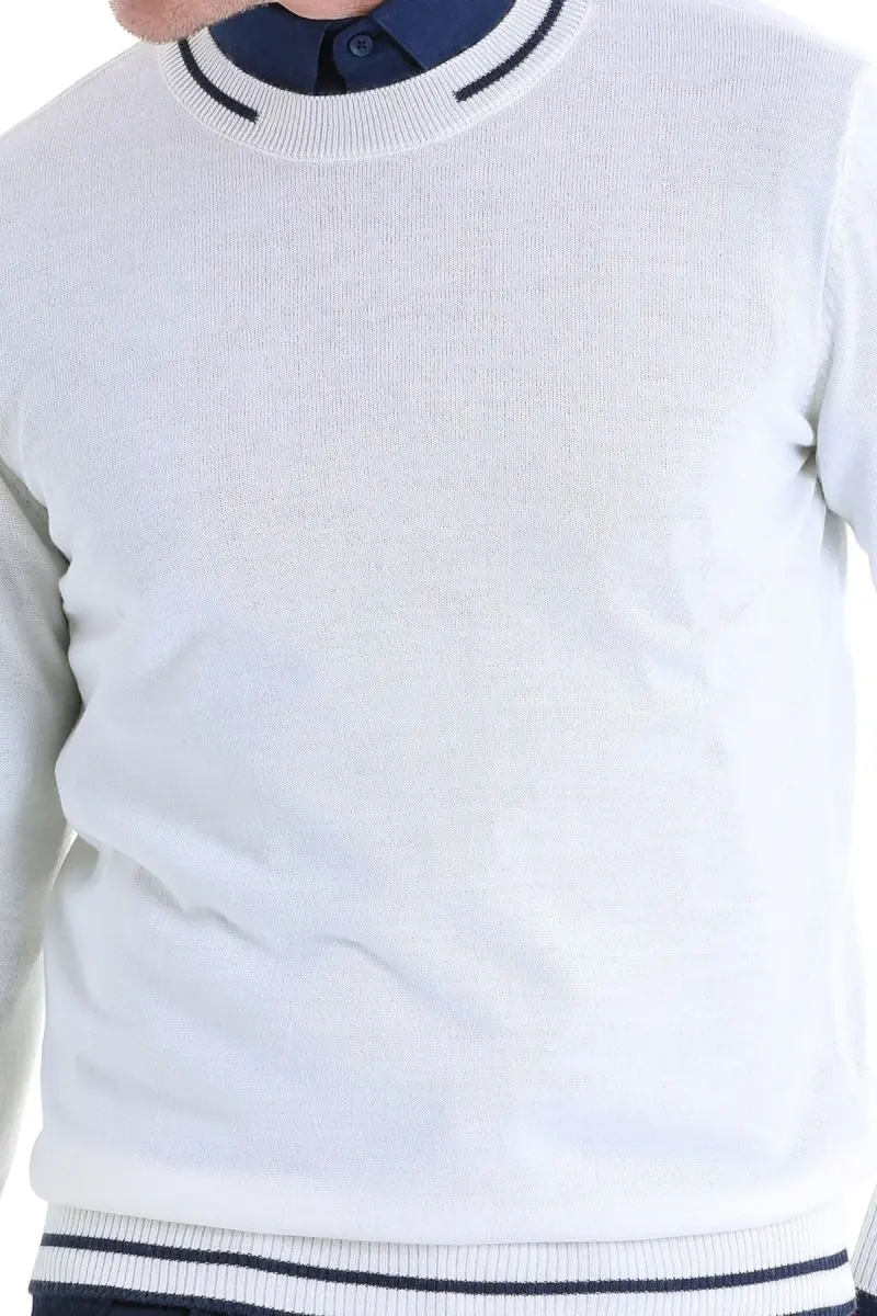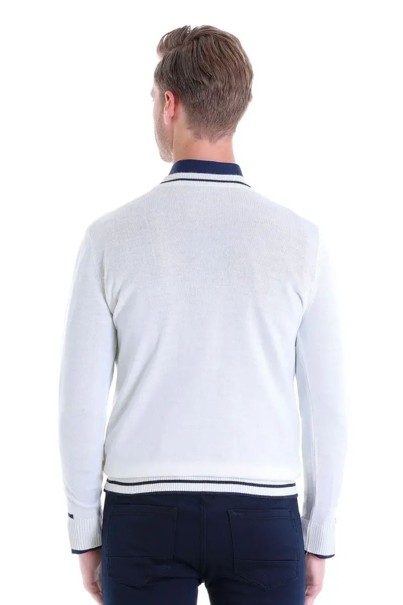 Ekru Comfort Fit Desenli Bisiklet Yaka Yünlü Yün Kazak-Ekru
