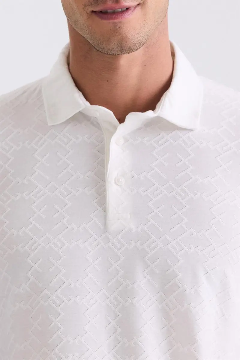 Ekru Slim Fit naqshli polo yoqali 100% paxta futbolka