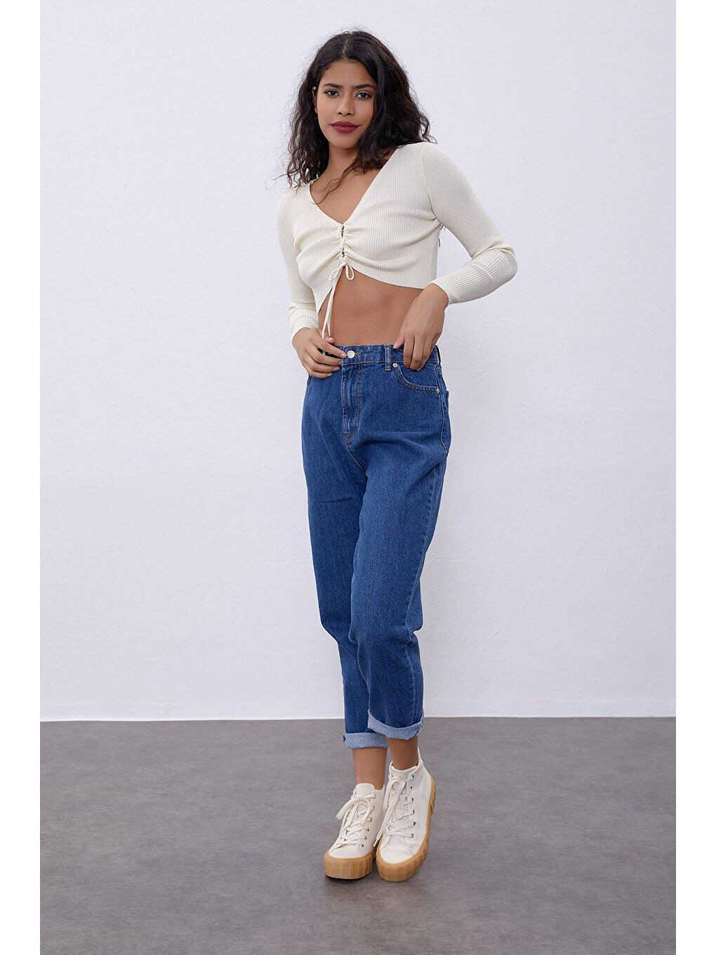 Şıklığı ve rahatlığı bir araya getiren Ekru V Yaka Göğüs Dekolteli Triko Kazak, gardırobunuzun vazgeçilmez parçalarından biri olacak. Zarif V yakası ve göğüs dekoltesi ile feminen bir görünüm sunarken, yumuşak triko kumaşıyla gün boyu konfor sağlar. Hem günlük hayatta hem de özel günlerde rahatlıkla tercih edebileceğiniz bu kazak, farklı kombin seçenekleriyle tarzınıza şıklık katmanıza yardımcı olur.