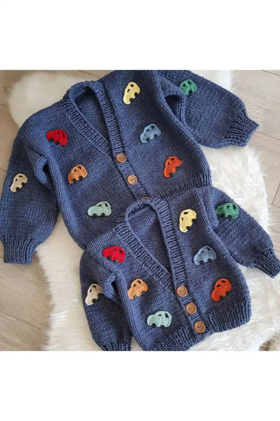 chaqaloq ko'ylagi, qo'l bilan to'qilgan, mashina shakli, bolalar kiyimi, chaqaloq kiyimlari
