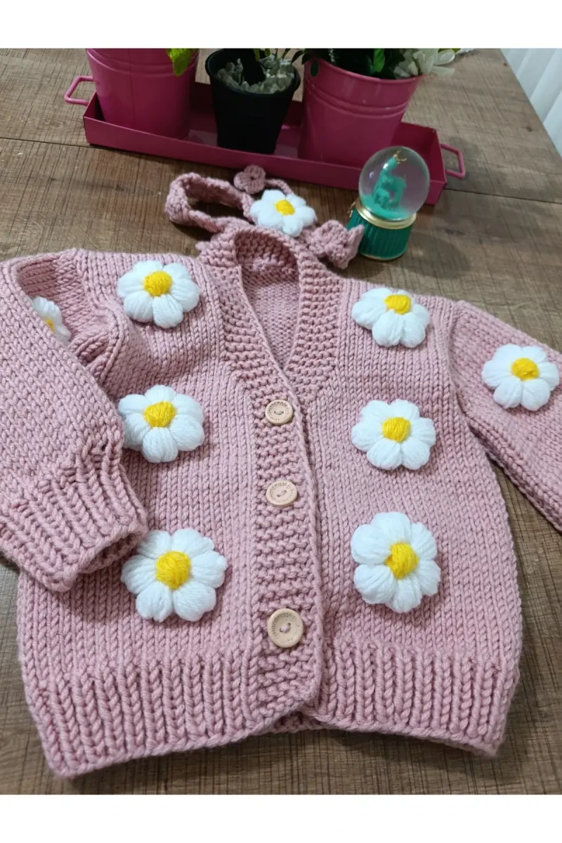 EL ÖRGÜSÜ ÇOCUK HIRKA-Pudra rengi