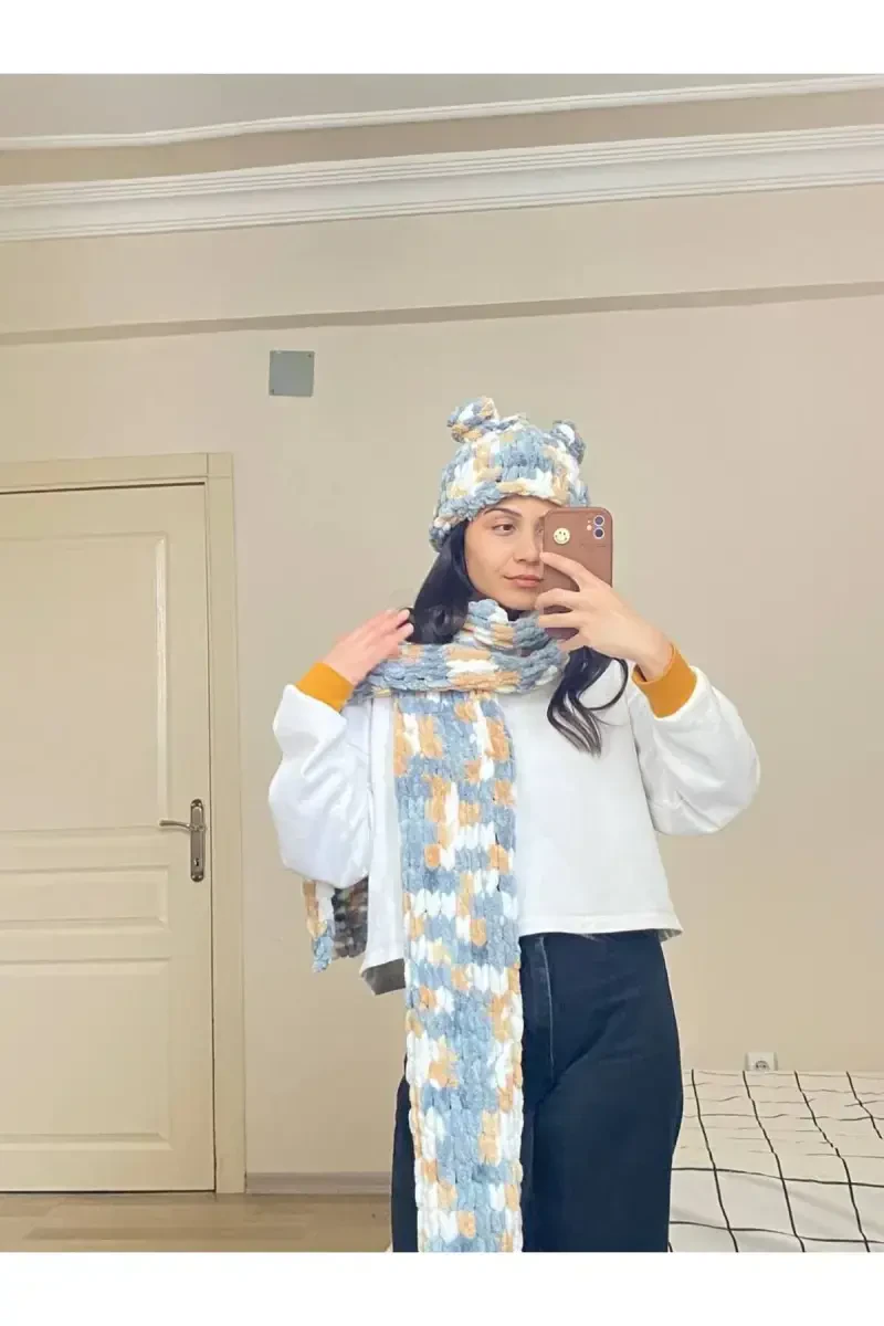 Hand-Knitted Puffy Scarf Shawl - Gray Cinnamon White is a unique accessory that will keep you warm in cold weather and complement your style with its soft texture and elegant color combination. Thanks to its puffy texture, it offers a voluminous and showy look, while its hand-knitted nature ensures that each scarf shawl is unique. The harmony of gray, cinnamon, and white colors offers a timeless elegance that can be easily combined with any outfit. Whether for daily use or special occasions, you will always make a difference with this scarf shawl.Product DescriptionHand-Knitted Puffy Scarf Shawl - Gray Cinnamon White is a unique accessory that will complete your style in cold weather and keep you warm. This special design scarf shawl is produced with hand-knitting technique and contains care and love in each stitch. Thanks to its puffy texture, it offers a voluminous and showy look, while its soft and light structure provides comfortable use throughout the day. The perfect harmony of gray, cinnamon, and white colors offers a sophisticated elegance that can be easily combined with any outfit. This color combination appeals to both classic and modern styles and is a candidate to be an indispensable part of your wardrobe.The fact that it is hand-knitted ensures that each scarf shawl is unique and unique. Unlike mass production, the careful knitting of each stitch increases the quality and value of the scarf shawl. The puffy texture not only adds a visual richness to the scarf shawl, but also provides more heat insulation, protecting you better in cold weather. You can easily use it with your jeans and knitwear combinations in daily use, and with a stylish coat or dress on special occasions.Hand-Knitted Puffy Scarf Shawl - Gray Cinnamon White is not just an accessory, but also a style statement. It is a perfect choice to feel special and reflect your style. It is also a great alternative to give to your loved ones. You can offer them warmth, elegance and the value of handwork together. With this scarf shawl, you will both complete your style and stay warm in cold weather. It is a timeless and stylish piece that should definitely be in your closet. Remember, a hand-knitted scarf shawl is not just an accessory, but also a work of art.Product Features* Produced with hand knitting technique.* Thanks to its puffy texture, it offers a voluminous and showy look.* Provides comfortable use with its soft and light structure.* Harmonious combination of gray, cinnamon and white colors.* Easily combined with any outfit.* Keeps warm in cold weather.* Suitable for daily use and special occasions.* Unique and unique design.* Made of high quality material.Additional InformationHand washing or dry cleaning is recommended for the product to have a long life. Please do not use bleach. Avoid drying in direct sunlight. Color tones may vary depending on your screen settings.