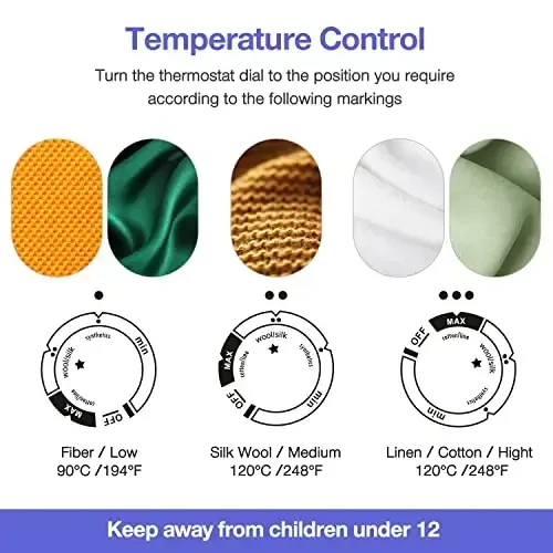 • Farklı kumaşlar için ayarlanabilir ısı ayarları