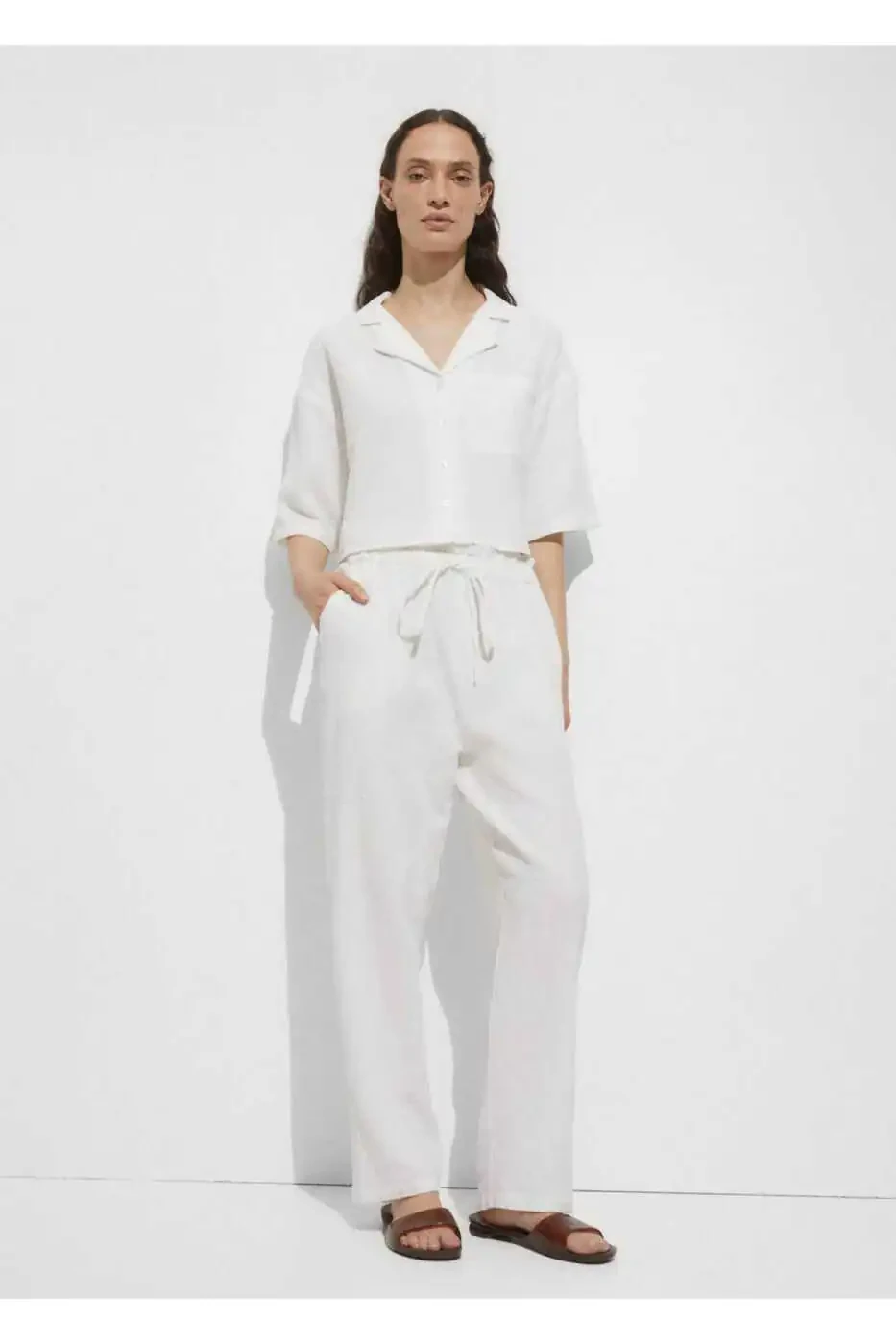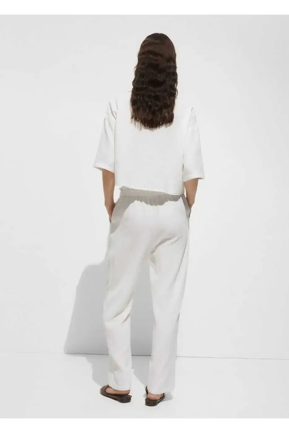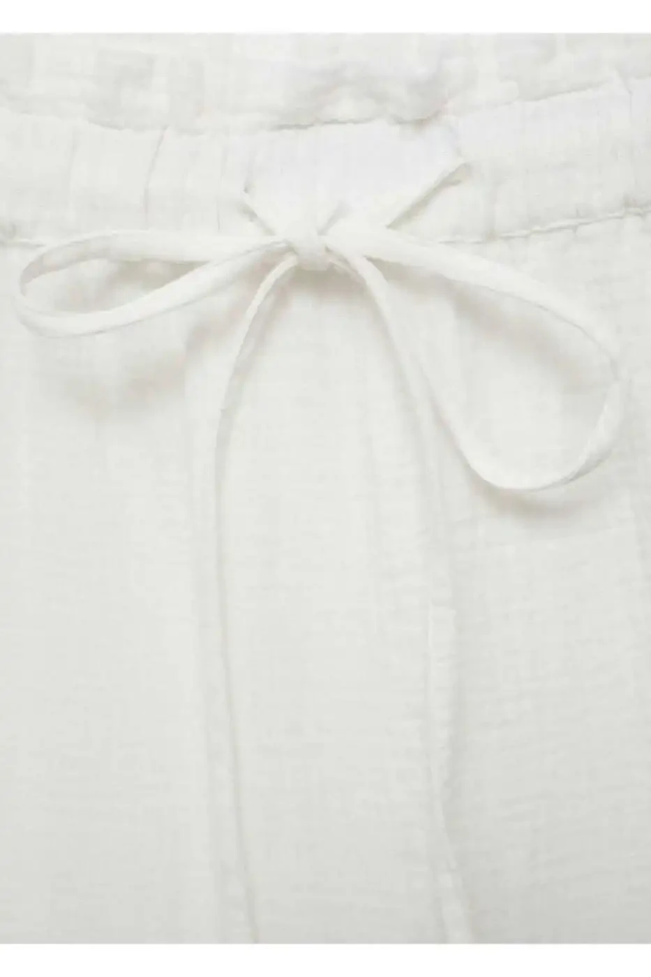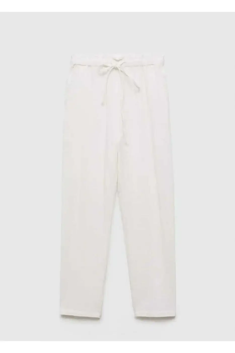 **Elastic Waist Cotton Pants** This product will be shipped by Trendyol. **Features:** * **Fabric:** Bambula, 100% cotton * **Model:** Straight * **Pockets:** Two front pockets * **Waist:** Elastic waist, adjustable waist tie * **Lining:** Unlined * **Inside leg length:** 70.5 cm * **Side seam length:** 100.8 cm **Care Instructions:** * Machine wash at max. 30°C with short spin * Do not bleach * Iron at max. 110°C * Do not dry clean * Do not tumble dry **Important Notes:** * There are less than 5 items in stock to be sold at a discounted price. * A maximum of 10 units of this product can be ordered. * You have the right to return the product free of charge within 15 days.