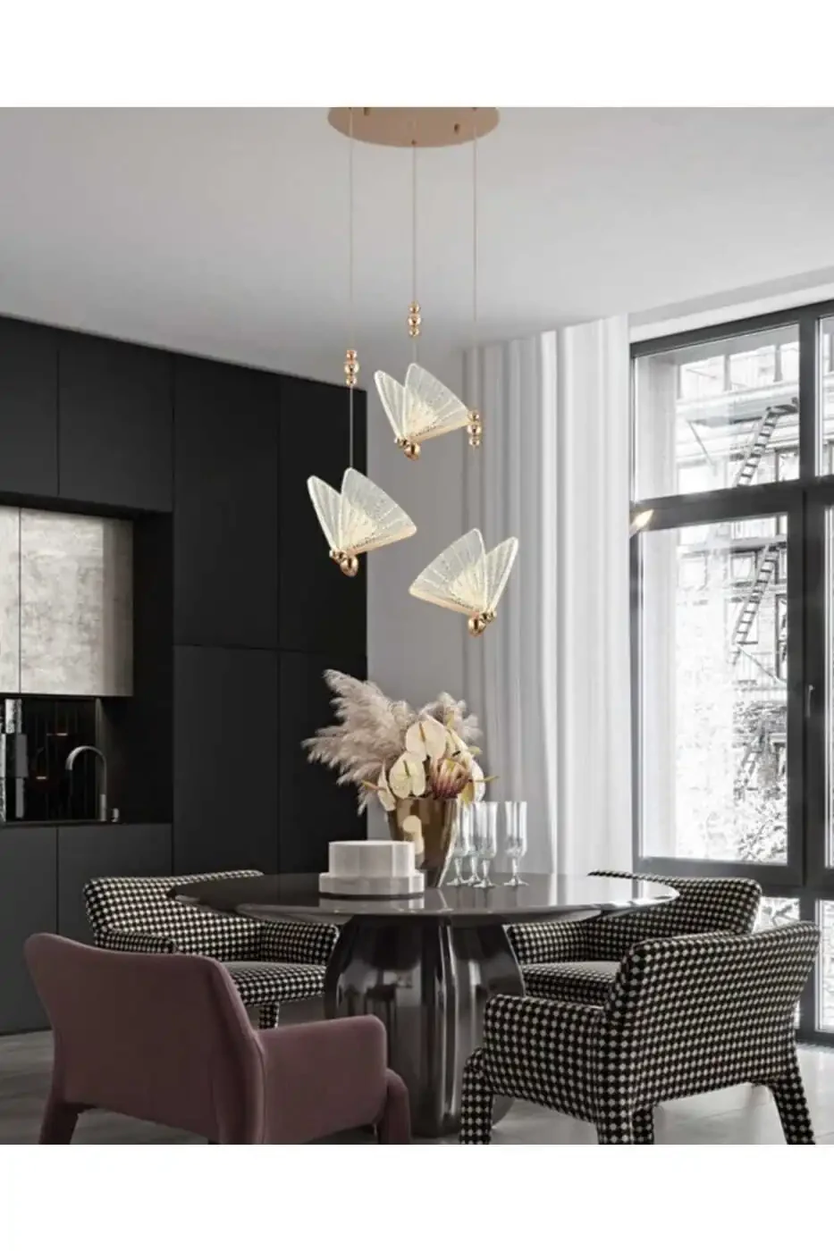 Добавьте в корзину Элегантную современную люстру с тремя подвесками в виде бабочки, LED, розовое золото, желтая, чтобы добавить современный штрих в каждый уголок вашего дома!