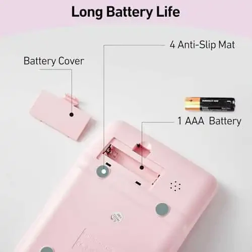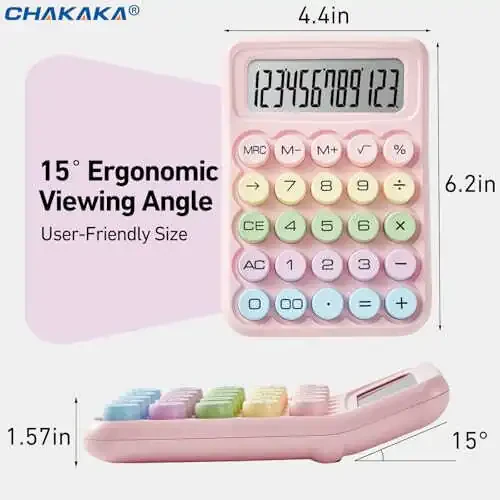 LARGE LCD DISPLAY & EASY TO READ: This mechanical calculator with large tilted LCD display provides bright number and legible output for easy viewing, even in low light condition BIG AND SENSITIVE BUTTONS: The desktop Calculator boats big round bubble buttons that produce substantial and pleasant clicky feeling. Well-spaced keyboard with large numbers make your ever press more readable and accurate. Wrist protection is provided by the ergonomic spring-loaded construction STYLISH AND RELIABLE: This aesthetic calculator combines eye catching color with girly looking, making it easy to find in work area. The desk calculator's non-slip structure, four rubber feet, and built from high strength plastics make it particularly sturdy and dependable FUNCTIONAL AND USER-FRIENDLY: This cute pink calculator provides most of the keys needed for kids, adults and students. Support Add, Subtraction, Multiplication, Division, Square Roots, Negative,Delete Key (→),%, M+/M-/MRC, CE/AC Buttons. Its portability and ease of use make it the ideal pink office accessories for daily use ENERGY EFFICIENT & AUTO POWER-OFF: The basic four function Calculator requires one AAA Battery (not included) to operate can be more energy efficient. PLEASE NOTE: “Auto Shut-Off” The big button calculator will turn itself off after about 10 minutes of being idle USED WIDELY: Perfect small simple electronic calculator for many occasions: business, office, home, basic budgeting, school, and more. The handheld battery operated calculator could put the “fun” in “functional,” no matter who is using it AFTER-SALES SERVICE: All our products come with a 90-day technical support. Our customer support team responds within 24 hours, promptly addressing any questions or concerns you may have