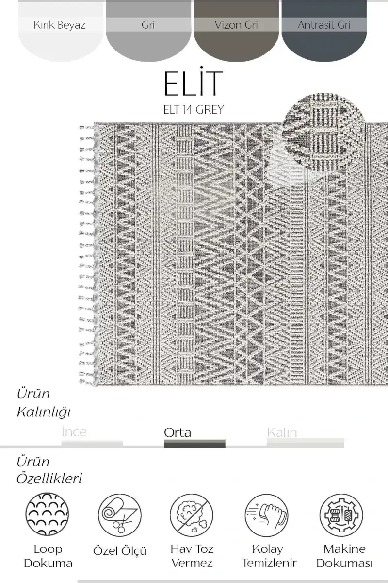 The Elit 14 Grey Rug is designed to add a modern touch to your living spaces. With its bouclé texture and Scandinavian influences, it creates both a stylish and warm atmosphere. Ethnic patterns add a unique touch to your kitchens, while as a decorative hallway rug, it provides an aesthetic entrance to your home. The elegance of the grey color allows the rug to easily adapt to any environment. Offered with Cool Halı assurance, this rug promises long-lasting use with its high-quality material and meticulous workmanship. Thanks to the special weaving of the product, it does not shed fluff and is easy to clean, making it ideal for daily use. Whether you use it in your living room, kitchen, or hallway, the Elit 14 Grey Rug will add value to your space and increase your comfort. Produced in Turkey, this rug brings domestic production quality to your home, while catering to every need with its different size options. Refresh the atmosphere of your home with the Elit 14 Grey Rug and create a modern and stylish living space.